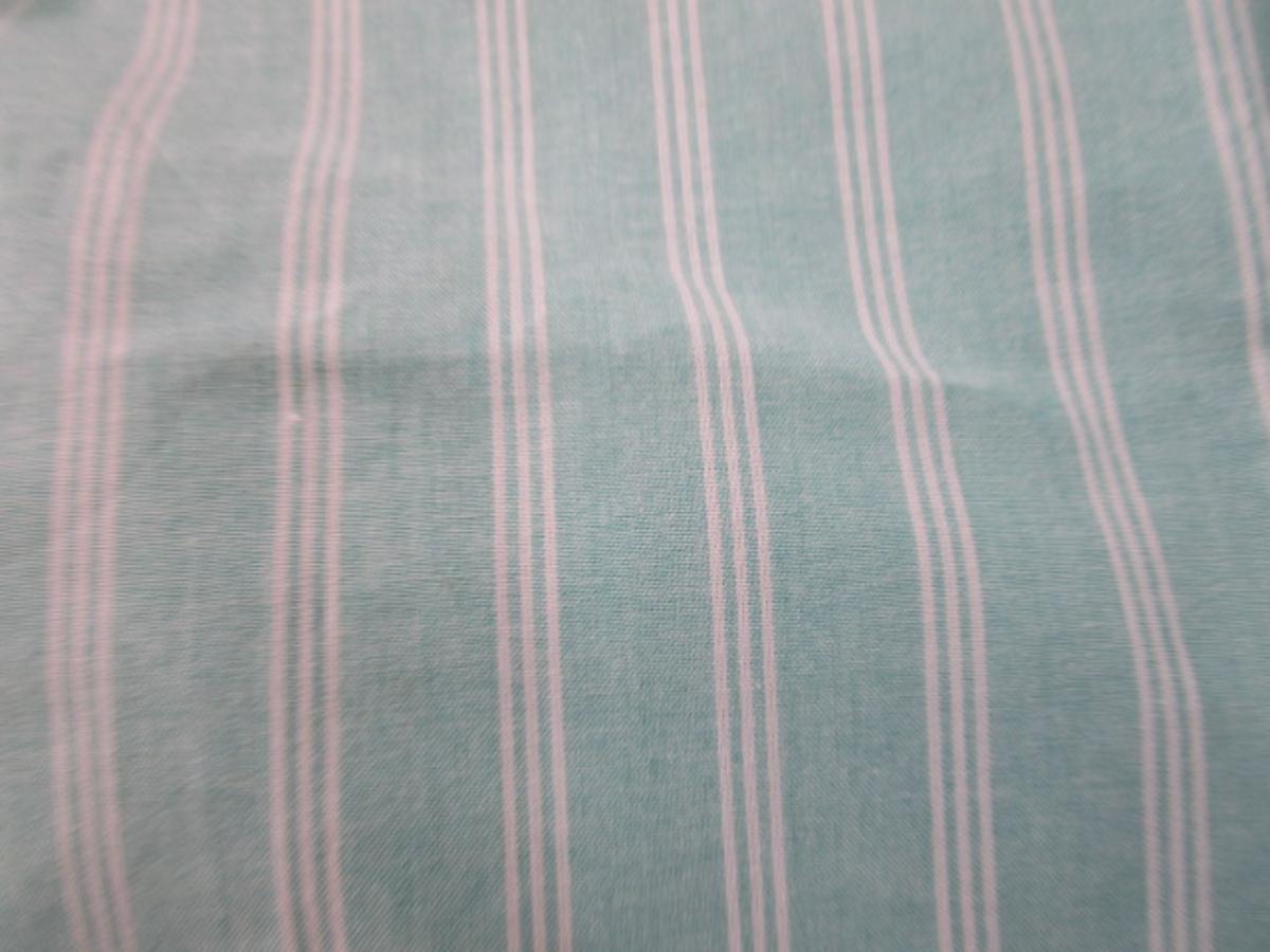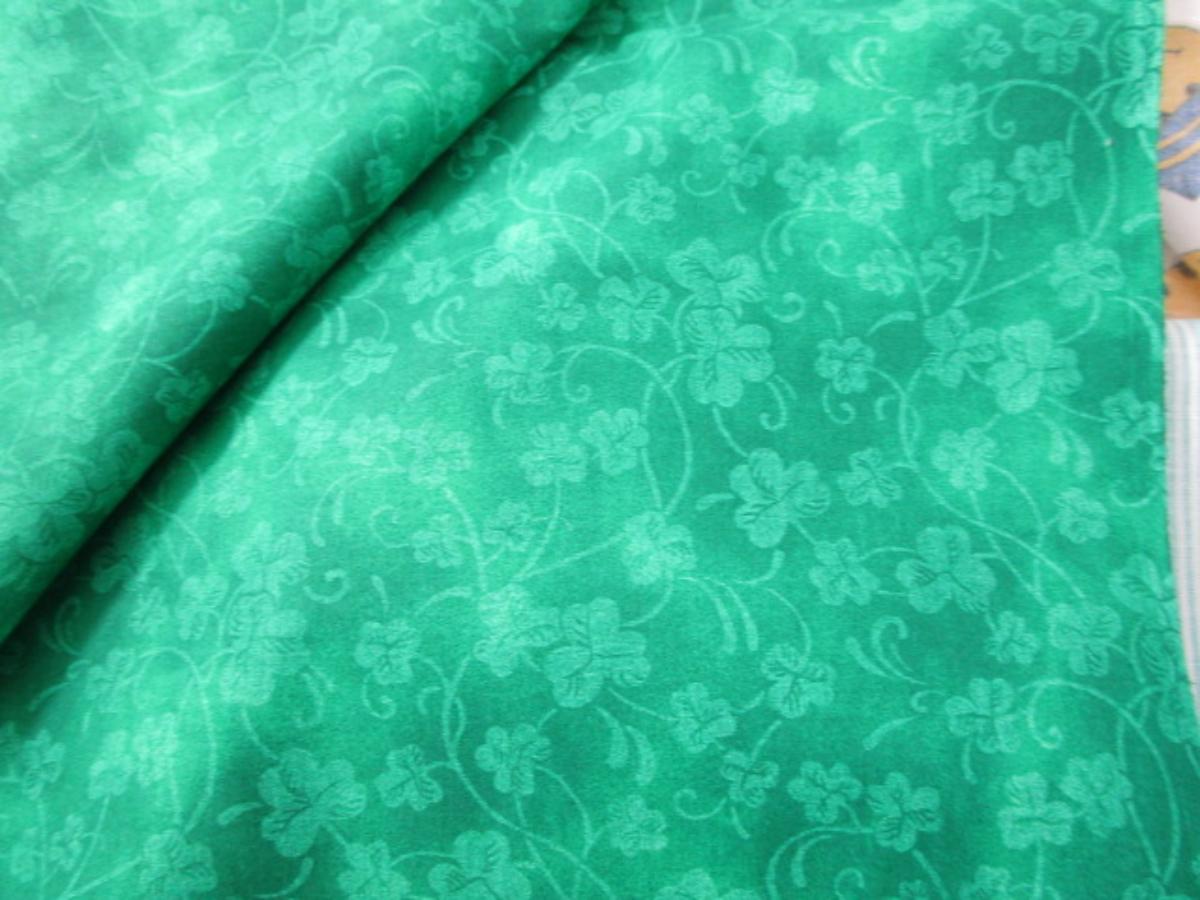 Striped broadcloth fabric is 62" wide, smiley face cotton fabric is 45" wide, shamrock cotton fabric is 45" wide