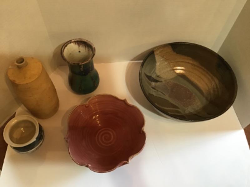 160    5 Pieces of Handmade Pottery (4 Signed )