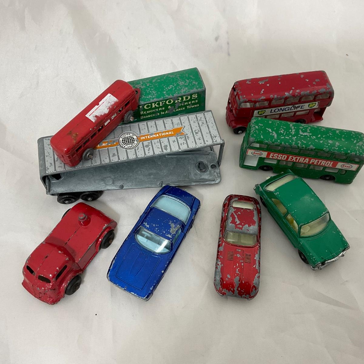 Collection of 1960’s matchbox cars, in rough well love condition. Please see photos for details and condition. ::: Shipping is available on this lot. If you require shipping you must let us know at the close of the auction. We will coordinate with you after the item has been won. Shipping fees will include insurance up to or exceeding the value of all items being mailed. If you have any questions regarding this lot please contact the auctioneer either via this website, by direct email or by phone. PICK UP TIMES and other important information can be found in the TERMS and DESCRIPTION of the auction. Please take a look for pertinent information. Thanks!