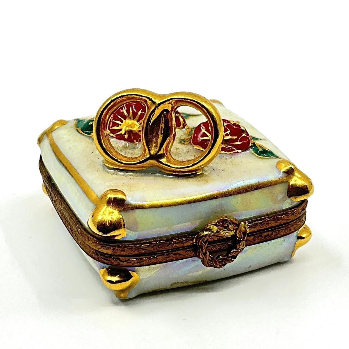 160 Limoges France Wedding Rings Pillow Porcelain Box