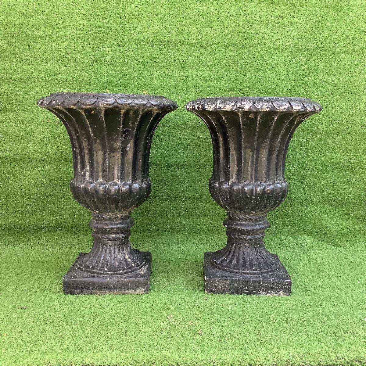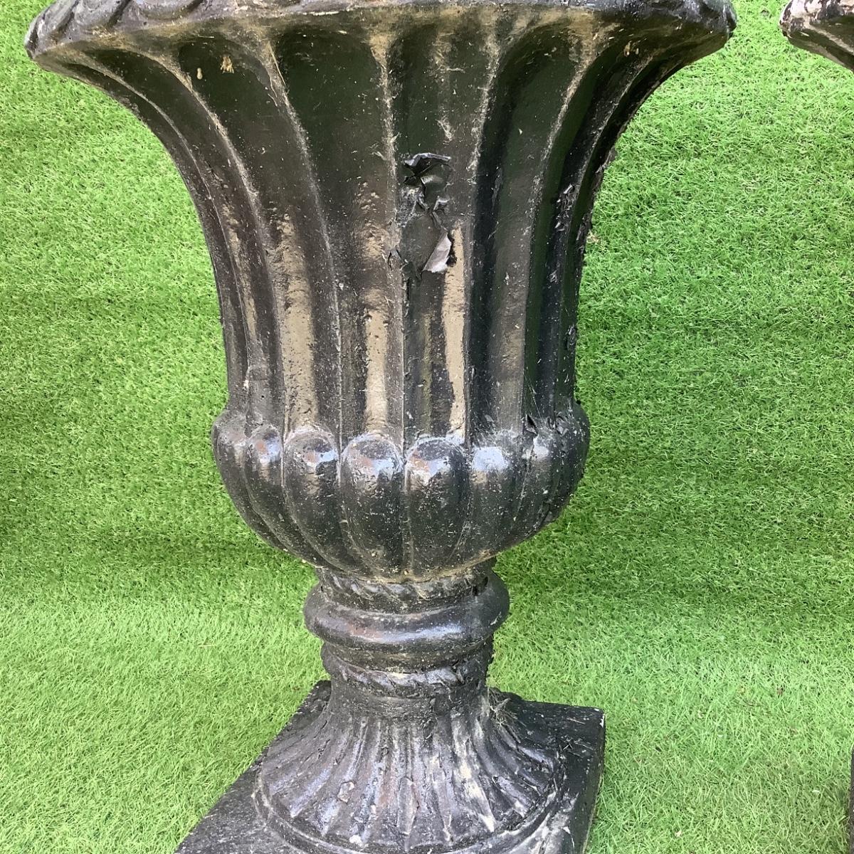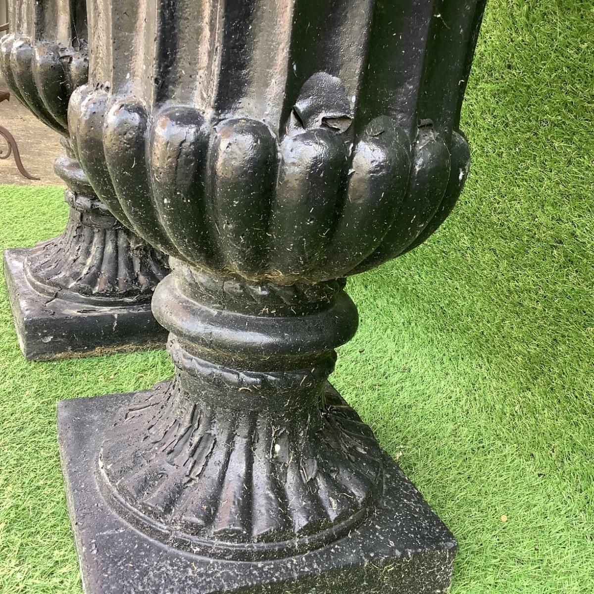 160 Pair of Large Black Pedestal Fiberglass Planters