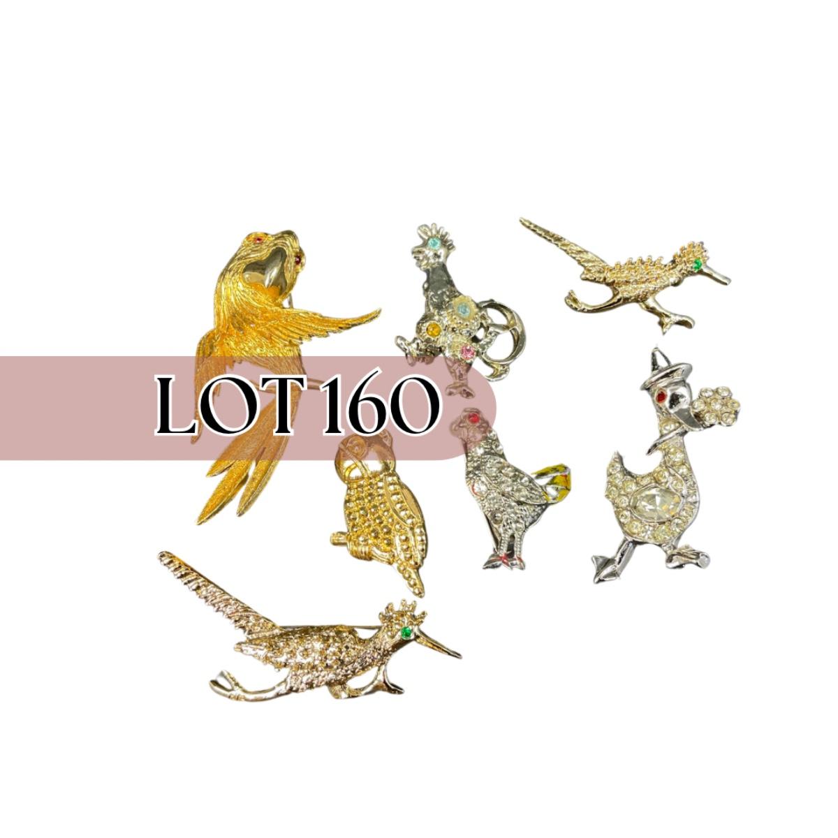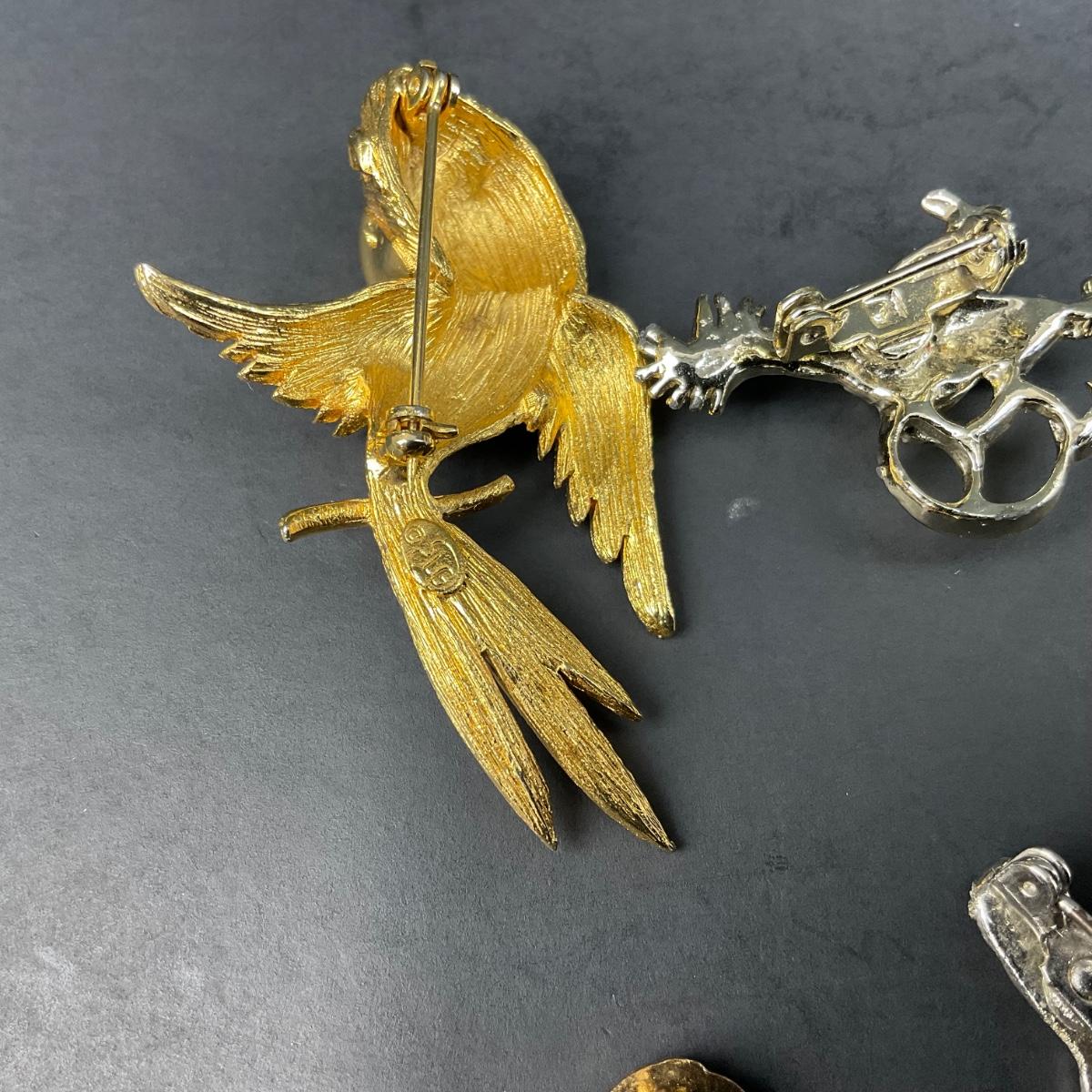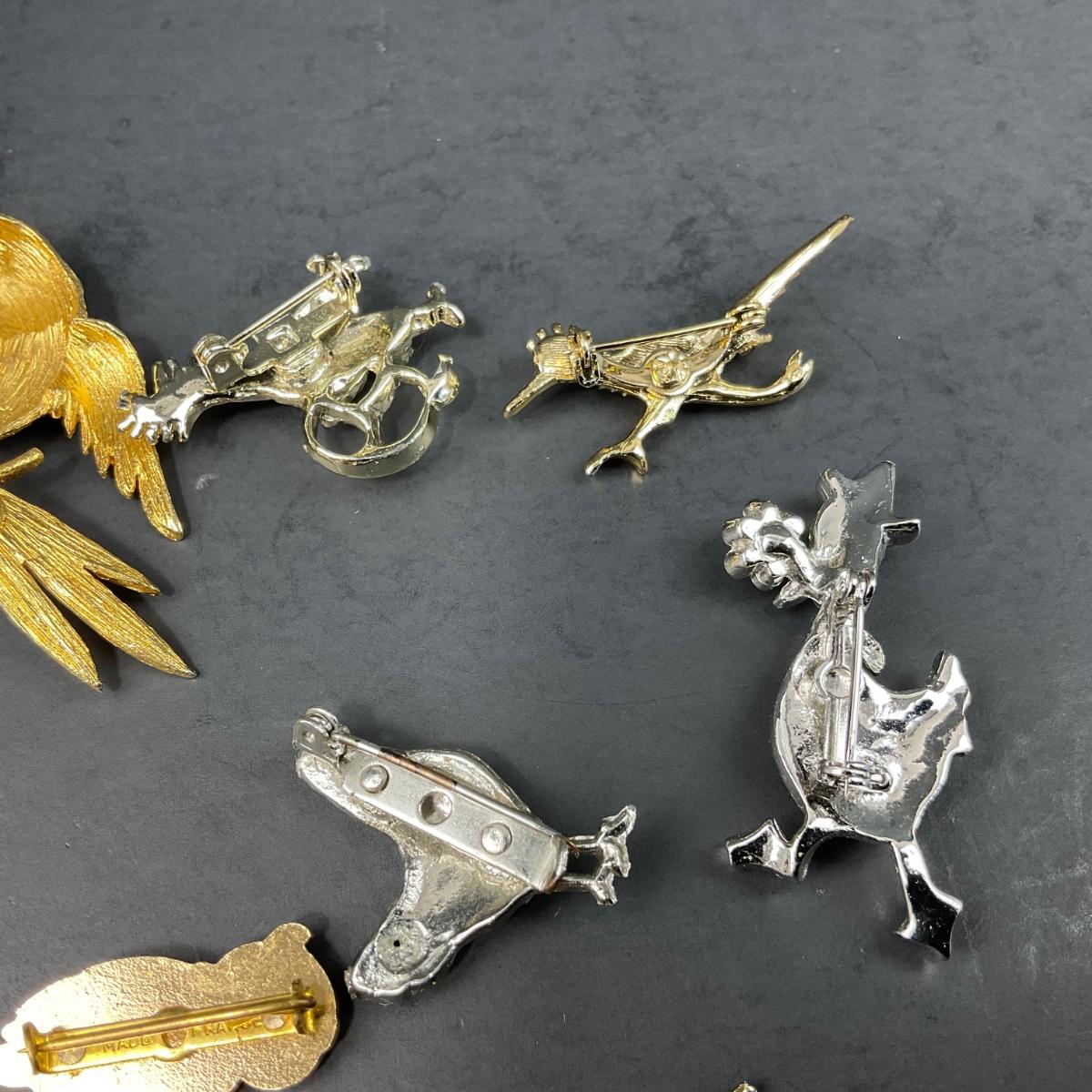 Seven assorted bird brooches. Please see photos for details and condition. Any condition statement is given as a courtesy to a client, is an opinion, and should not be treated as a statement of fact. Reference to condition written, oral or within a condition report shall not be regarded as a full account of condition and may not include all defects, alterations, or restorations. Absence of a condition report does not imply a lot is flawless or lacking imperfections or damage. Katherine’s Auction & Appraisal Service shall have no responsibility for any error or omission. Returns shall not be accepted on the basis of condition. ::: Shipping is available on this lot. If you require shipping you must let us know at the close of the auction. We will coordinate with you after the item has been won. Shipping fees will include insurance up to or exceeding the value of all items being mailed. If you have any questions regarding this lot please contact the auctioneer either via this website, by direct email or by phone. PICK UP TIMES and other important information can be found in the TERMS and DESCRIPTION of the auction. Please take a look for pertinent information. Thanks!