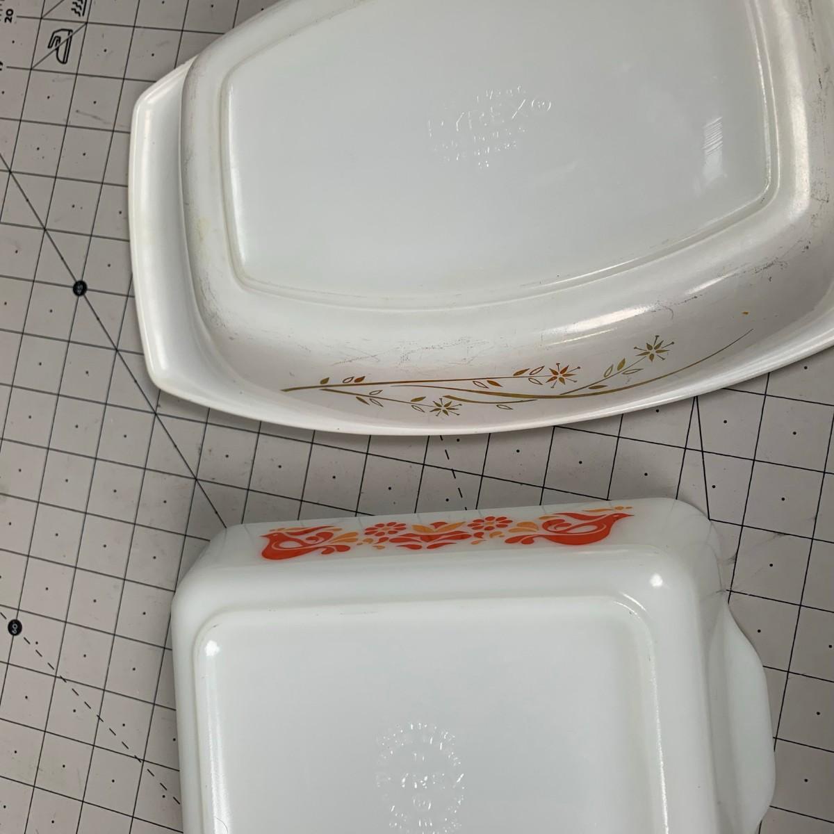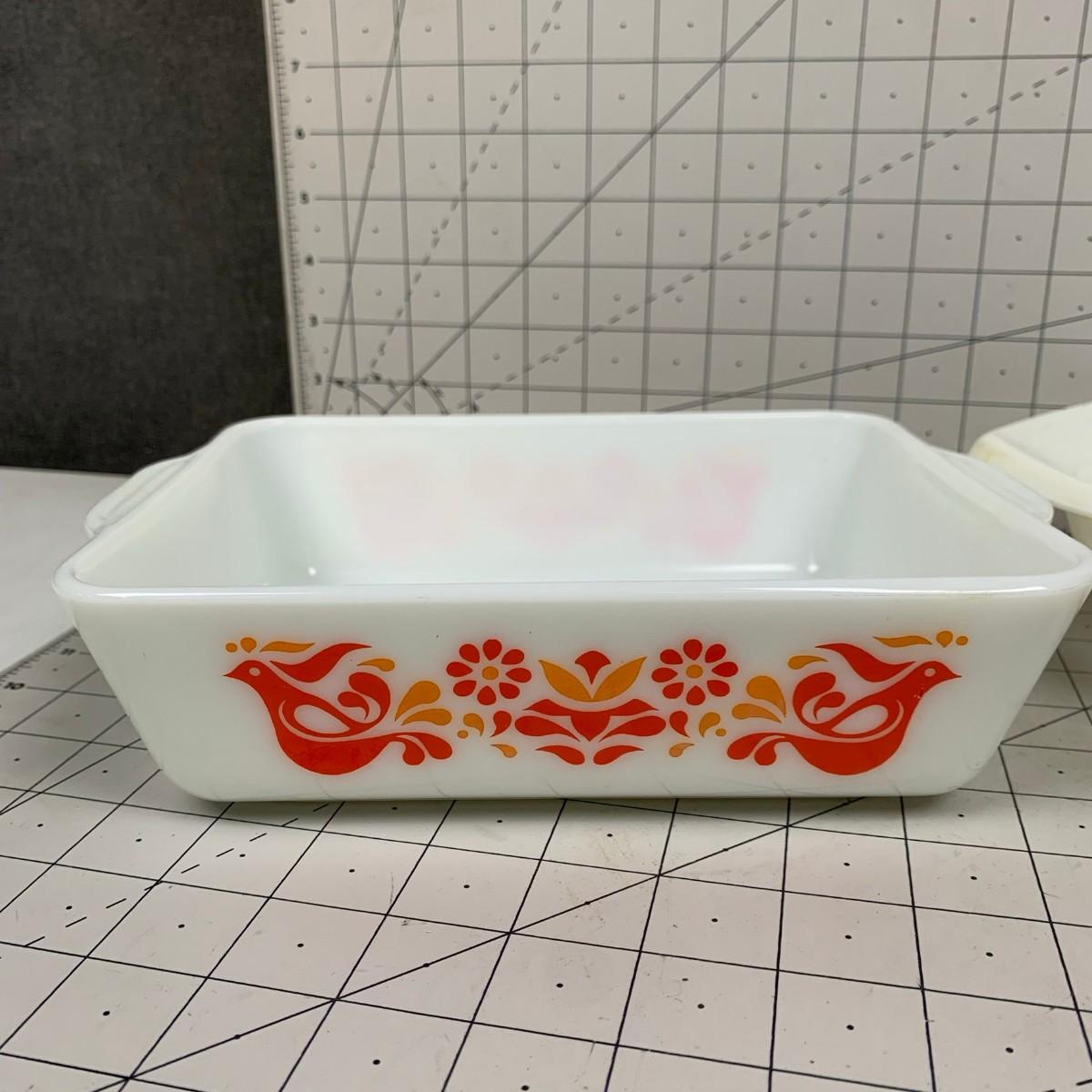 #160 Pyrex Friendship Doves & Pyrex Golden Flower Baking Dishes