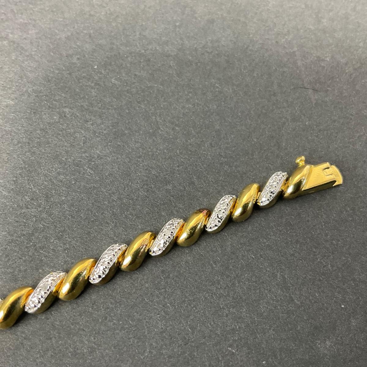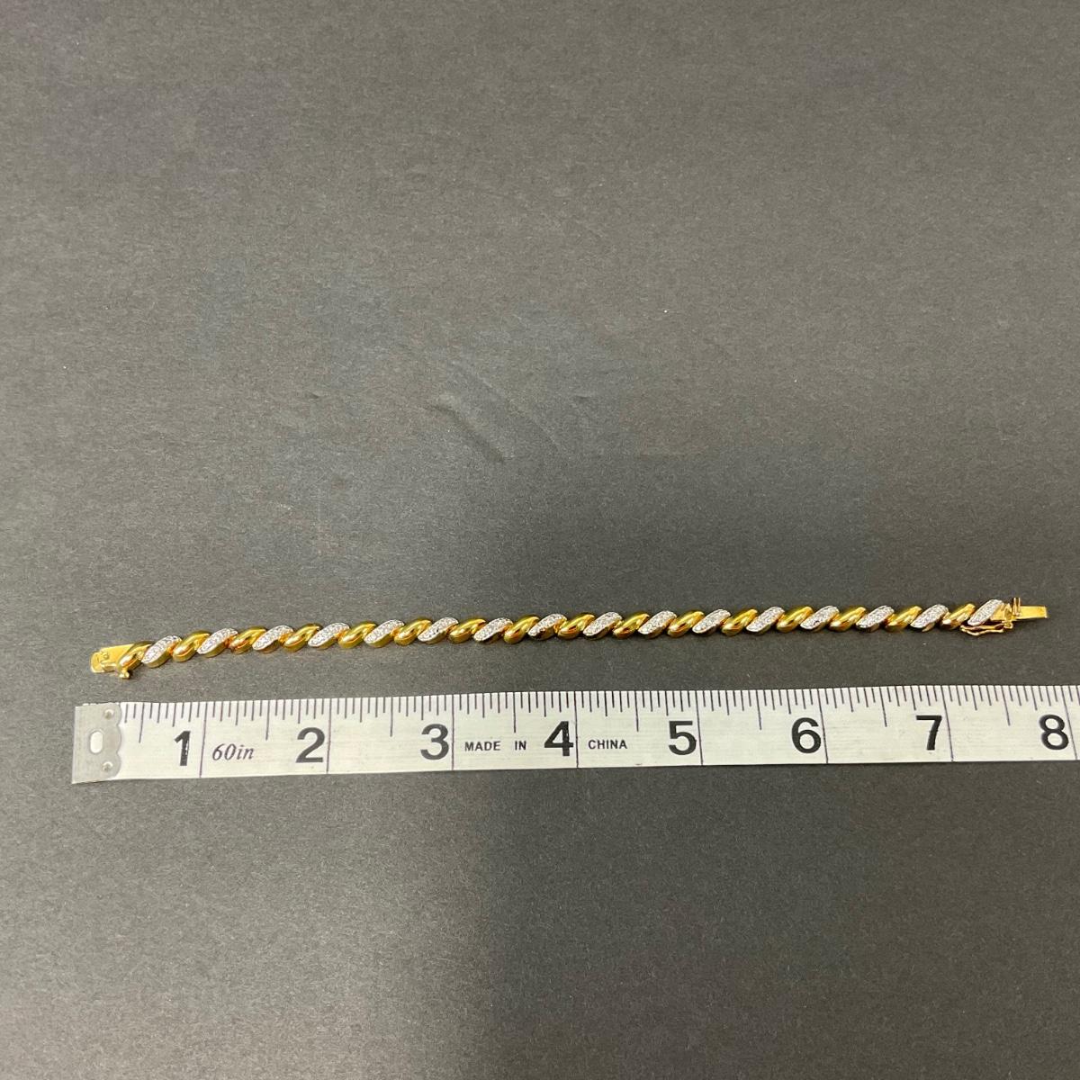 One marked 925 Sterling silver with gold wash bracelet. Please see photos for details and condition. Any condition statement is given as a courtesy to a client, is an opinion, and should not be treated as a statement of fact. Reference to condition written, oral or within a condition report shall not be regarded as a full account of condition and may not include all defects, alterations, or restorations. Absence of a condition report does not imply a lot is flawless or lacking imperfections or damage. Katherine’s Auction & Appraisal Service shall have no responsibility for any error or omission. Returns shall not be accepted on the basis of condition. ::: Shipping is available on this lot. If you require shipping you must let us know at the close of the auction. We will coordinate with you after the item has been won. Shipping fees will include insurance up to or exceeding the value of all items being mailed. If you have any questions regarding this lot please contact the auctioneer either via this website, by direct email or by phone. PICK UP TIMES and other important information can be found in the TERMS and DESCRIPTION of the auction. Please take a look for pertinent information. Thanks!