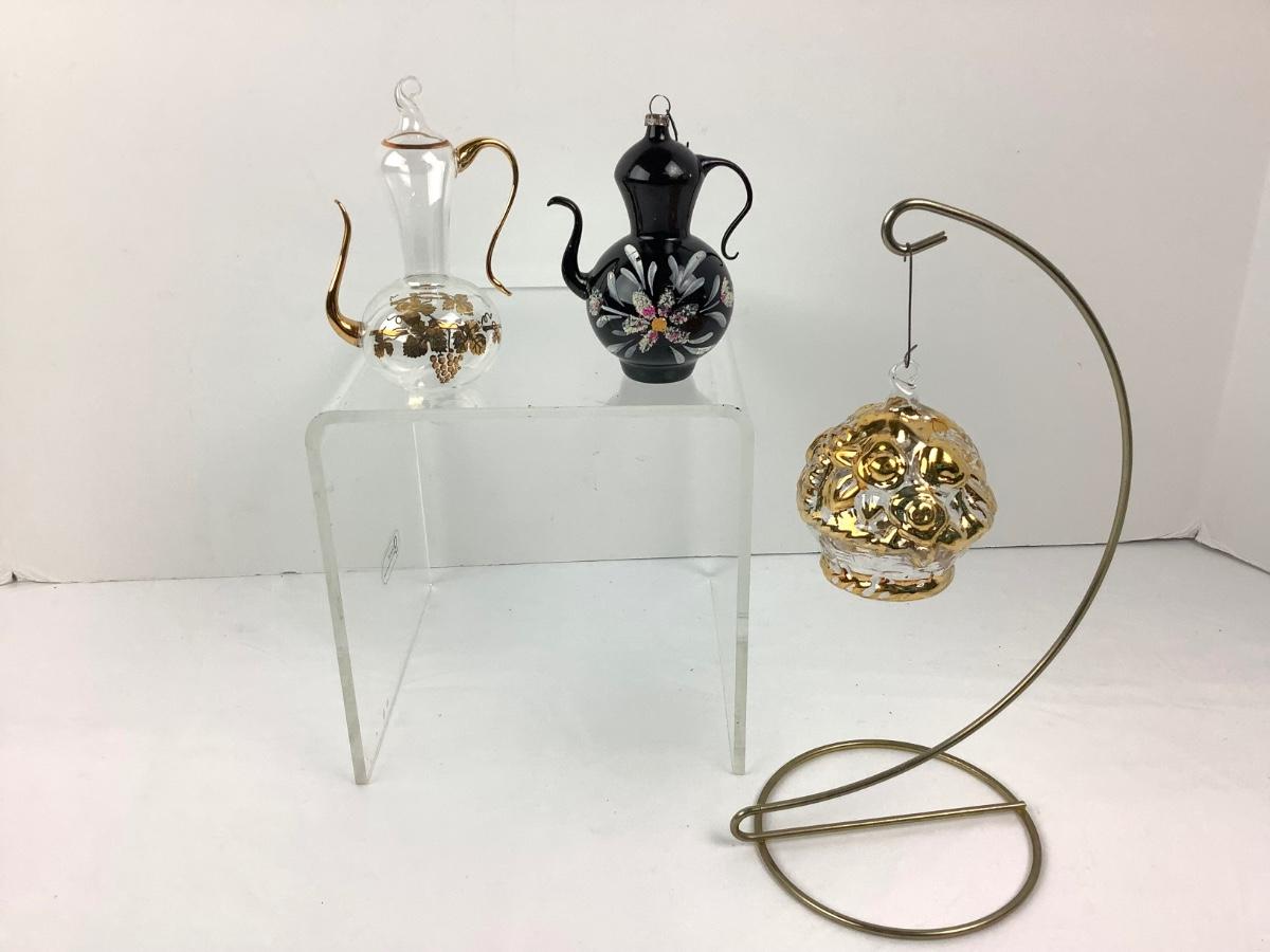160 Vintage Handblown Glass Ornaments, Teapots, Basket of Flowers, & House