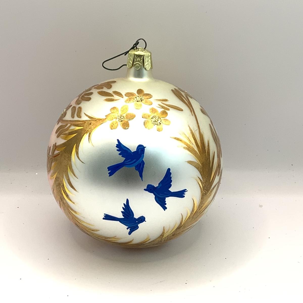1602 Christopher Radko Blue Bird Gold Ball Glass Ornament