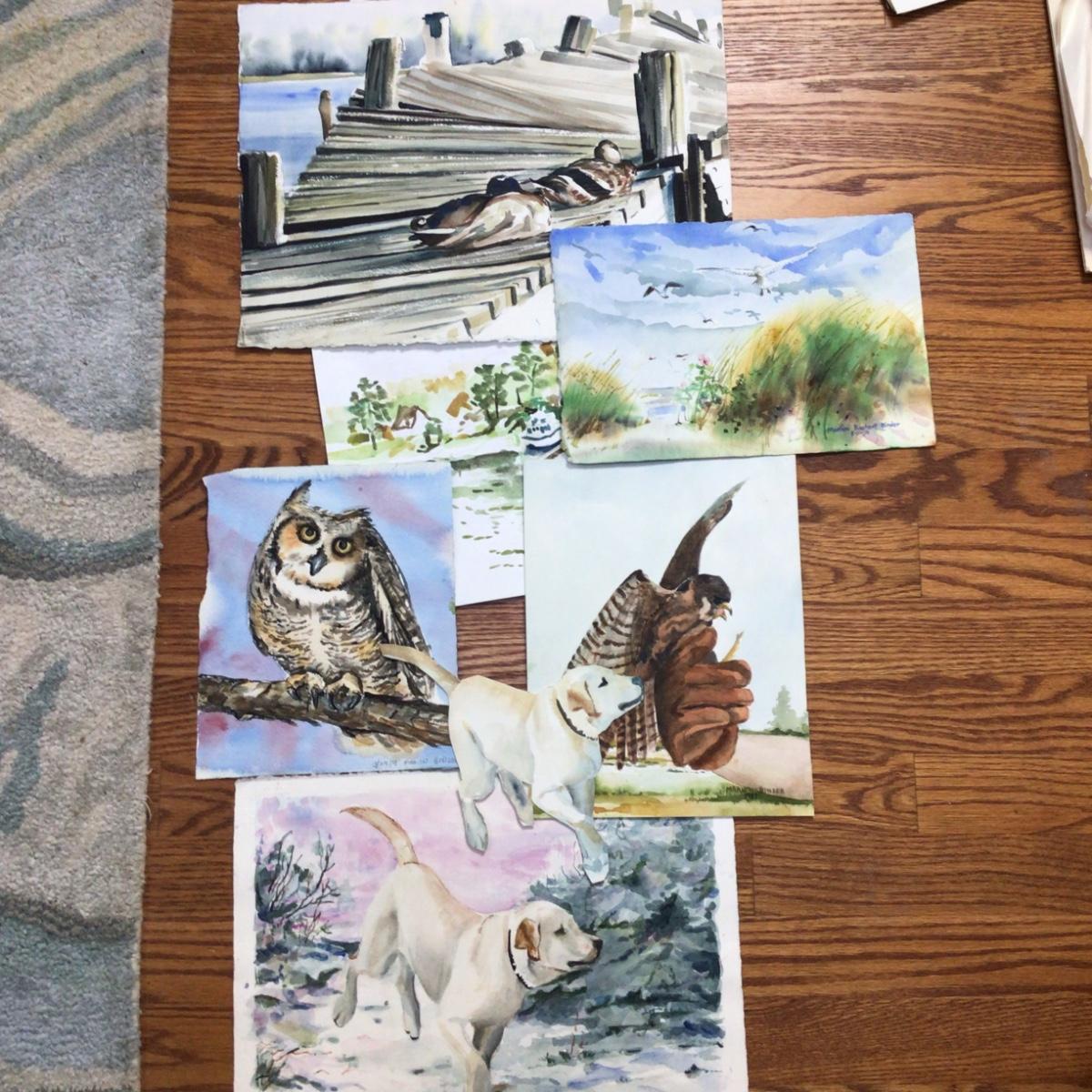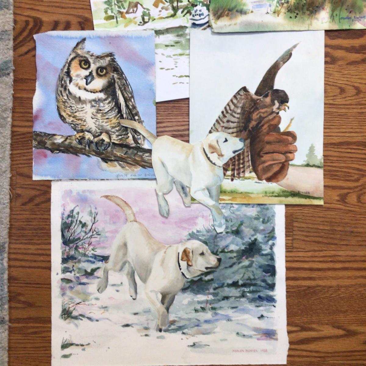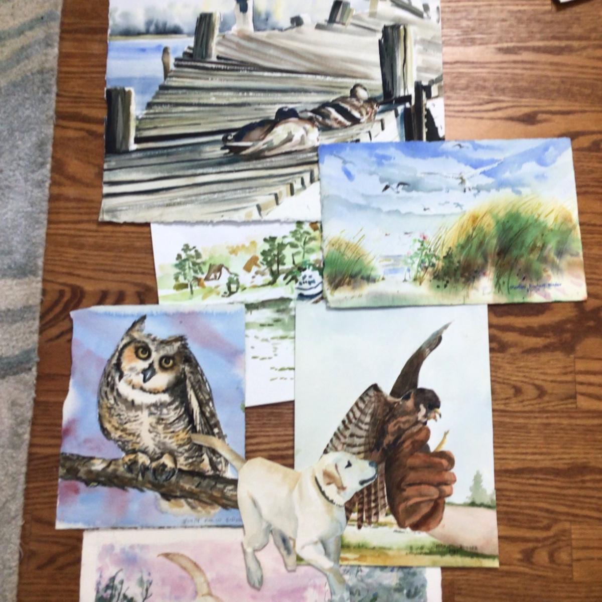 Lot contains 7 paintings each with an animal as the subject matter, they are all artist originals, one of a kind by local artist Marlen Binder.