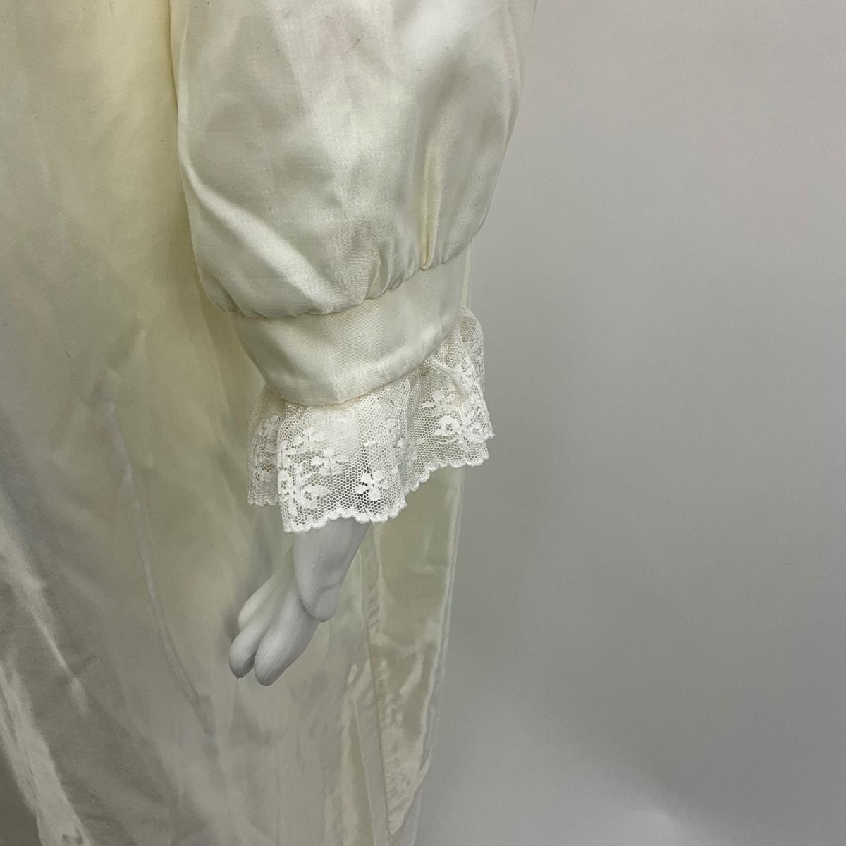 Nightgown is cream colored, size is medium, there are a few spots present, it measures 21" from armpit to armpit and 53" overall length.