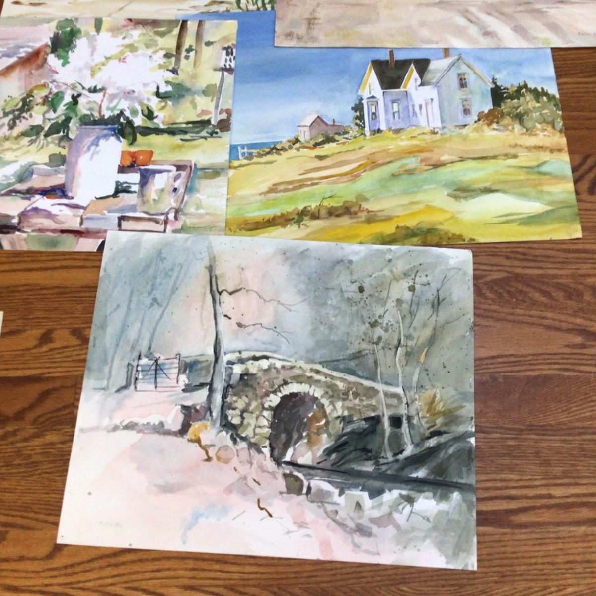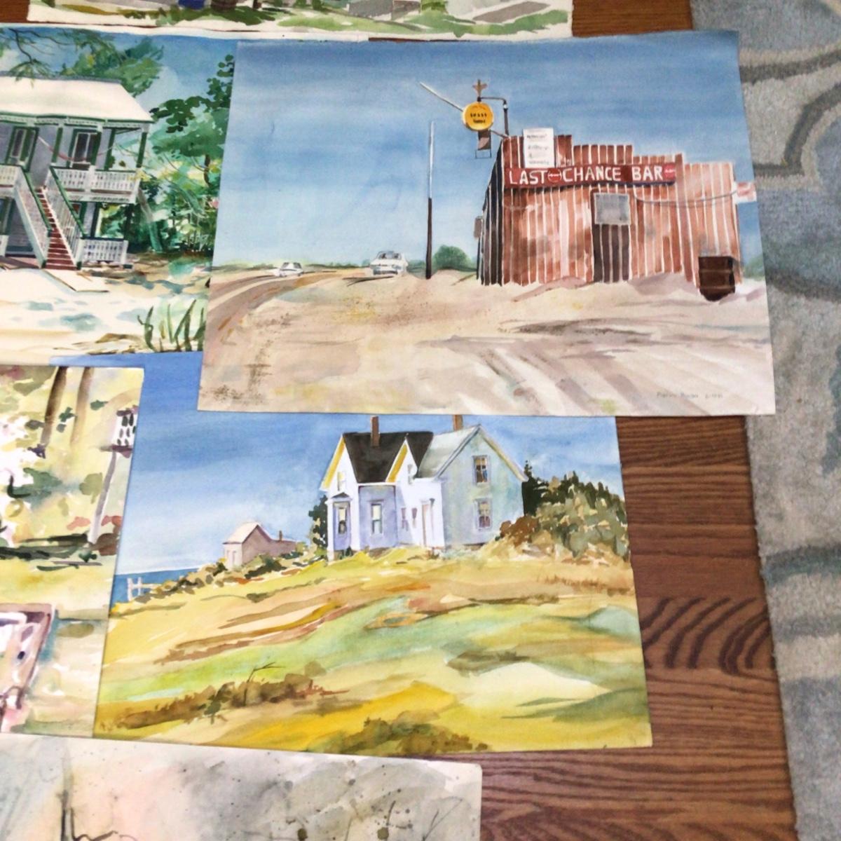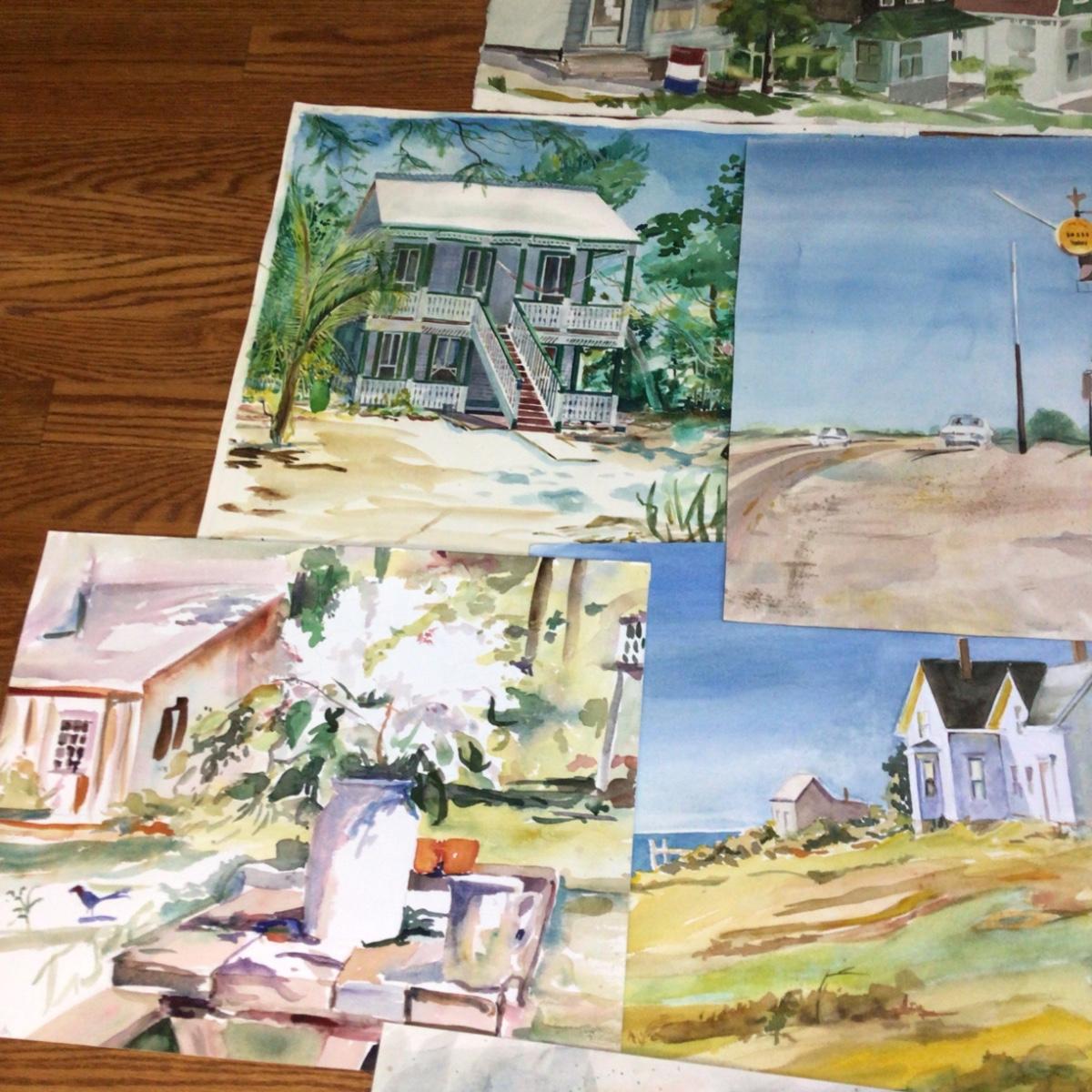 Lot contains 7 original watercolor paintings by local artist Marlen Binder, subject is various scenes, all are original works of art.