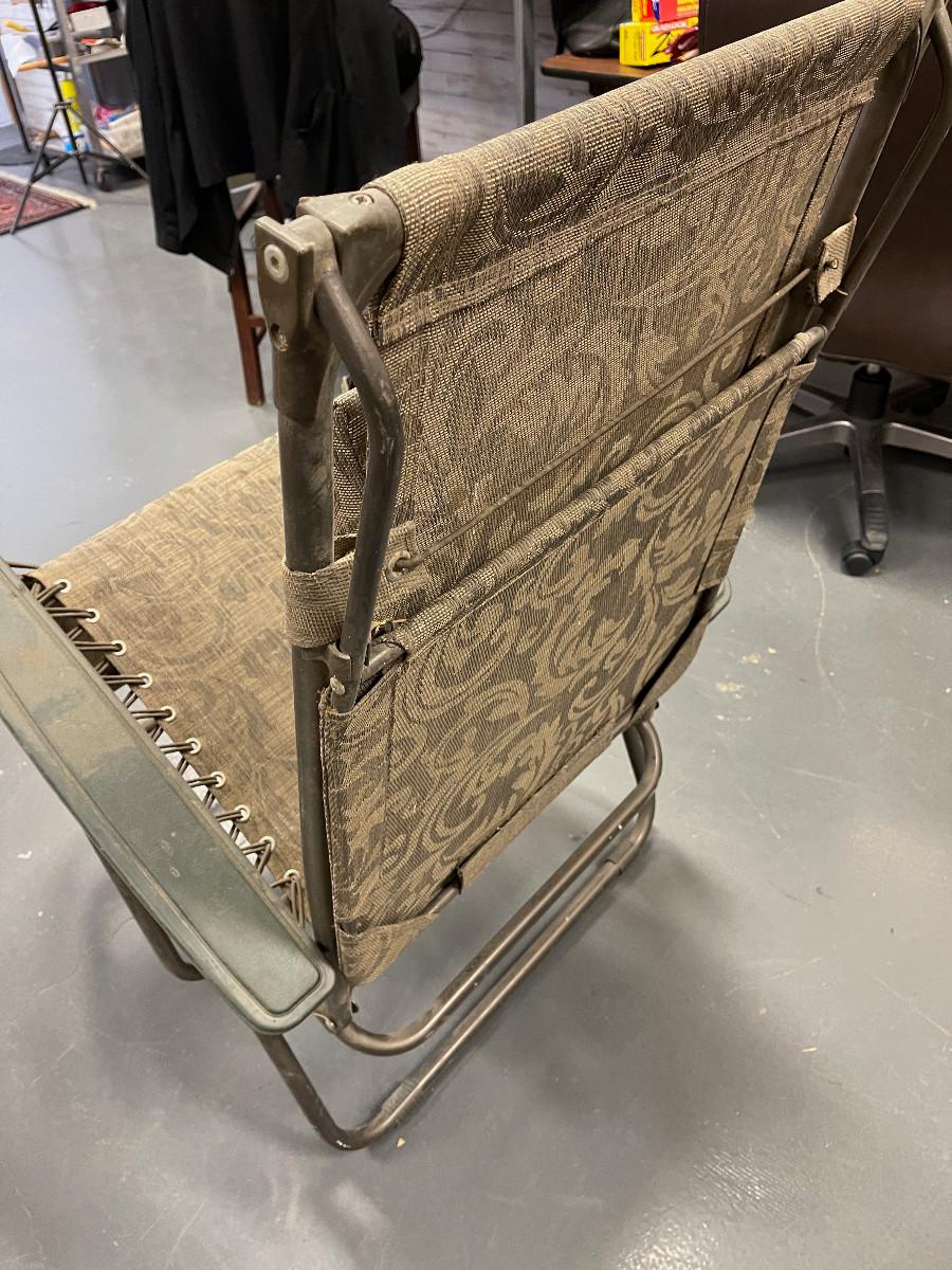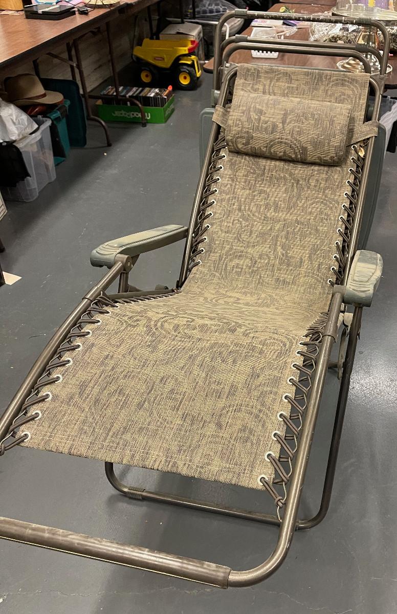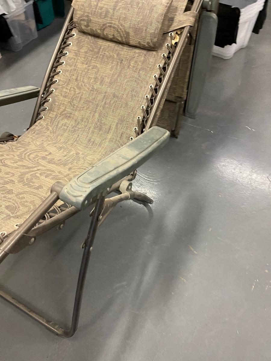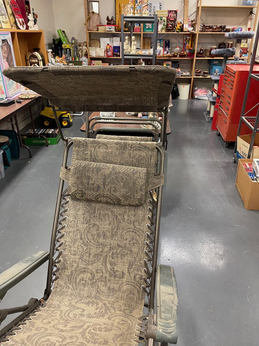 #161 2 Folding Deck Chairs - Brown, With Building Shades