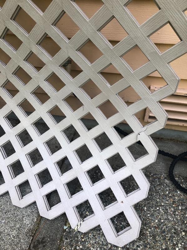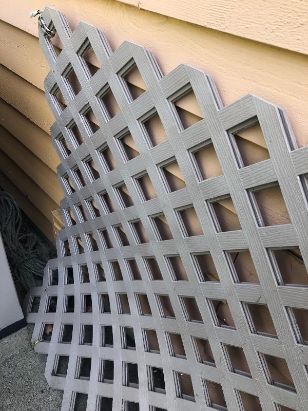 Four 4x8 Resin Lattice. And 20 foot aluminum Werner ladder Please note that the one in front is broken off in a few places. See photos