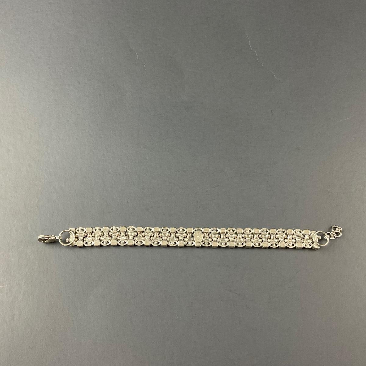 One marked Sorrelli rhinestone and green colored stone bracelet. This piece has no damage, and appears to be in great shape with no visable chips, cracks, or broken pieces. Please see photos for details and condition. Any condition statement is given as a courtesy to a client, is an opinion, and should not be treated as a statement of fact. Reference to condition written, oral or within a condition report shall not be regarded as a full account of condition and may not include all defects, alterations, or restorations. Absence of a condition report does not imply a lot is flawless or lacking imperfections or damage. Katherine’s Auction & Appraisal Service shall have no responsibility for any error or omission. Returns shall not be accepted on the basis of condition. ::: Shipping is available on this lot. If you require shipping you must let us know at the close of the auction. We will coordinate with you after the item has been won. Shipping fees will include insurance up to or exceeding the value of all items being mailed. If you have any questions regarding this lot please contact the auctioneer either via this website, by direct email or by phone. PICK UP TIMES and other important information can be found in the TERMS and DESCRIPTION of the auction. Please take a look for pertinent information. Thanks!