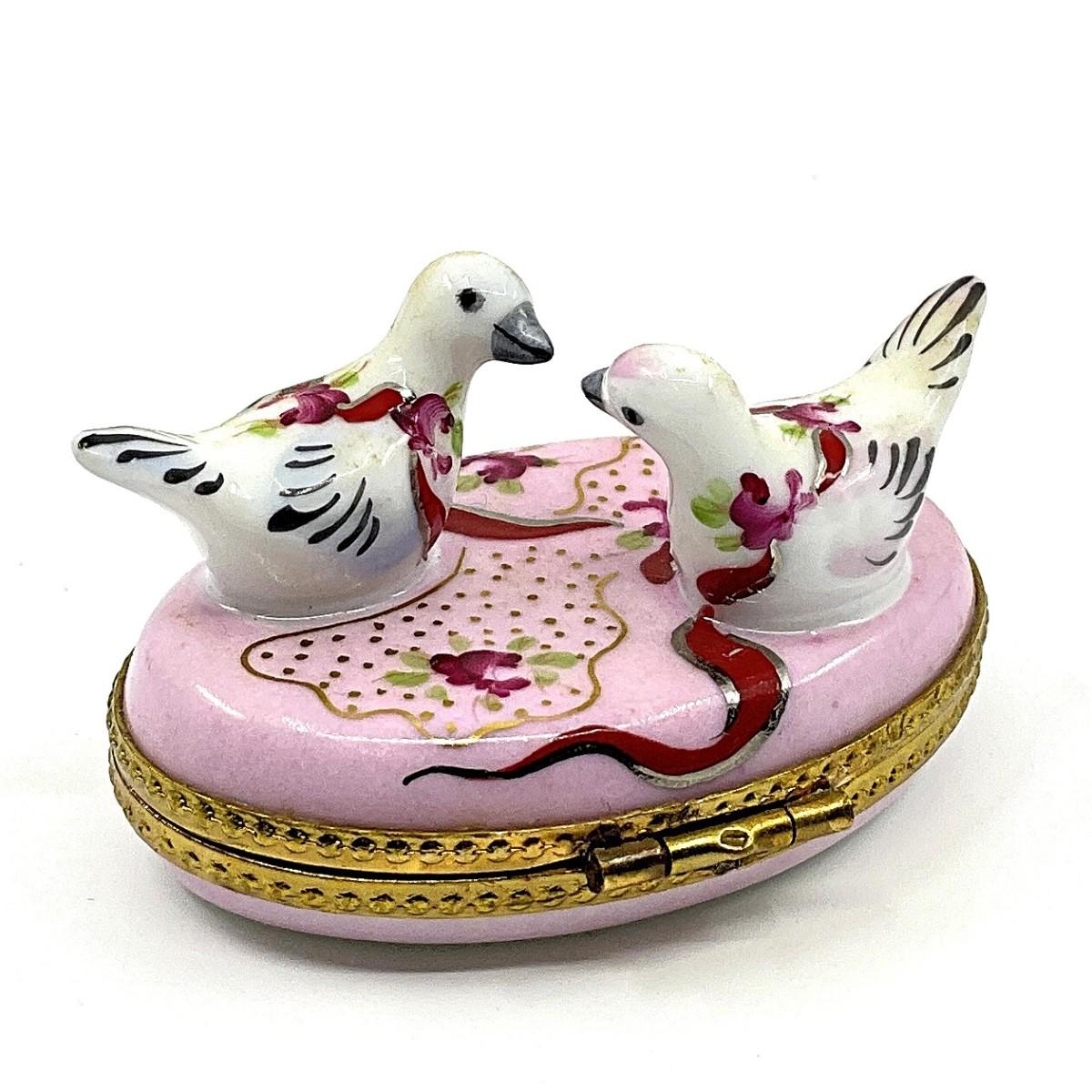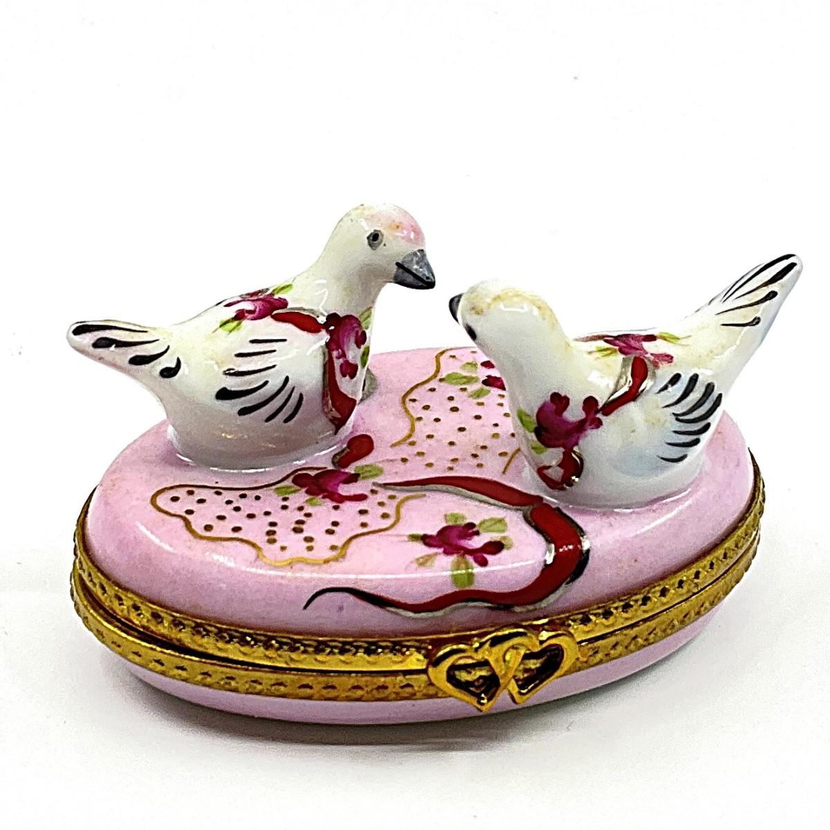 161 Limoges France C.M. Two Doves on A Pillow Porcelain Box