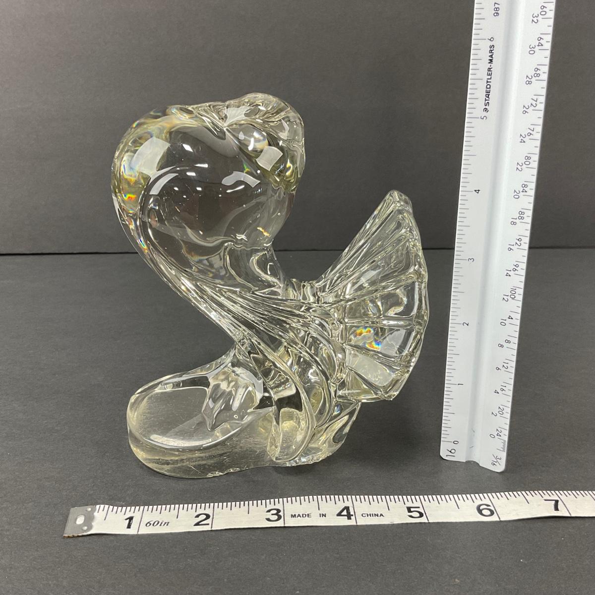 One vintage 1940’s Paden City art glass pouter pigeon figure. There are chips and the bottom base of this piece. This piece does have some scuffs, scratches, marks, or slight damage, but otherwise appears to be in great shape. Please see photos for details and condition. Any condition statement is given as a courtesy to a client, is an opinion, and should not be treated as a statement of fact. Reference to condition written, oral or within a condition report shall not be regarded as a full account of condition and may not include all defects, alterations, or restorations. Absence of a condition report does not imply a lot is flawless or lacking imperfections or damage. Katherine’s Auction & Appraisal Service shall have no responsibility for any error or omission. Returns shall not be accepted on the basis of condition. ::: Shipping is available on this lot. If you require shipping you must let us know at the close of the auction. We will coordinate with you after the item has been won. Shipping fees will include insurance up to or exceeding the value of all items being mailed. If you have any questions regarding this lot please contact the auctioneer either via this website, by direct email or by phone. PICK UP TIMES and other important information can be found in the TERMS and DESCRIPTION of the auction. Please take a look for pertinent information. Thanks!