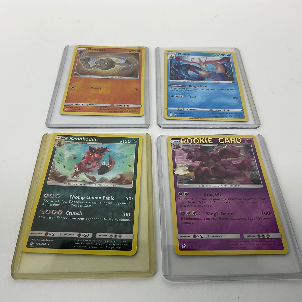 Twelve rare and ultra rare Pokémon cards in plastic sleeves. Please see photos for details and condition. ::: Shipping is available on this lot. If you require shipping you must let us know at the close of the auction. We will coordinate with you after the item has been won. Shipping fees will include insurance up to or exceeding the value of all items being mailed. If you have any questions regarding this lot please contact the auctioneer either via this website, by direct email or by phone. PICK UP TIMES and other important information can be found in the TERMS and DESCRIPTION of the auction. Please take a look for pertinent information. Thanks!