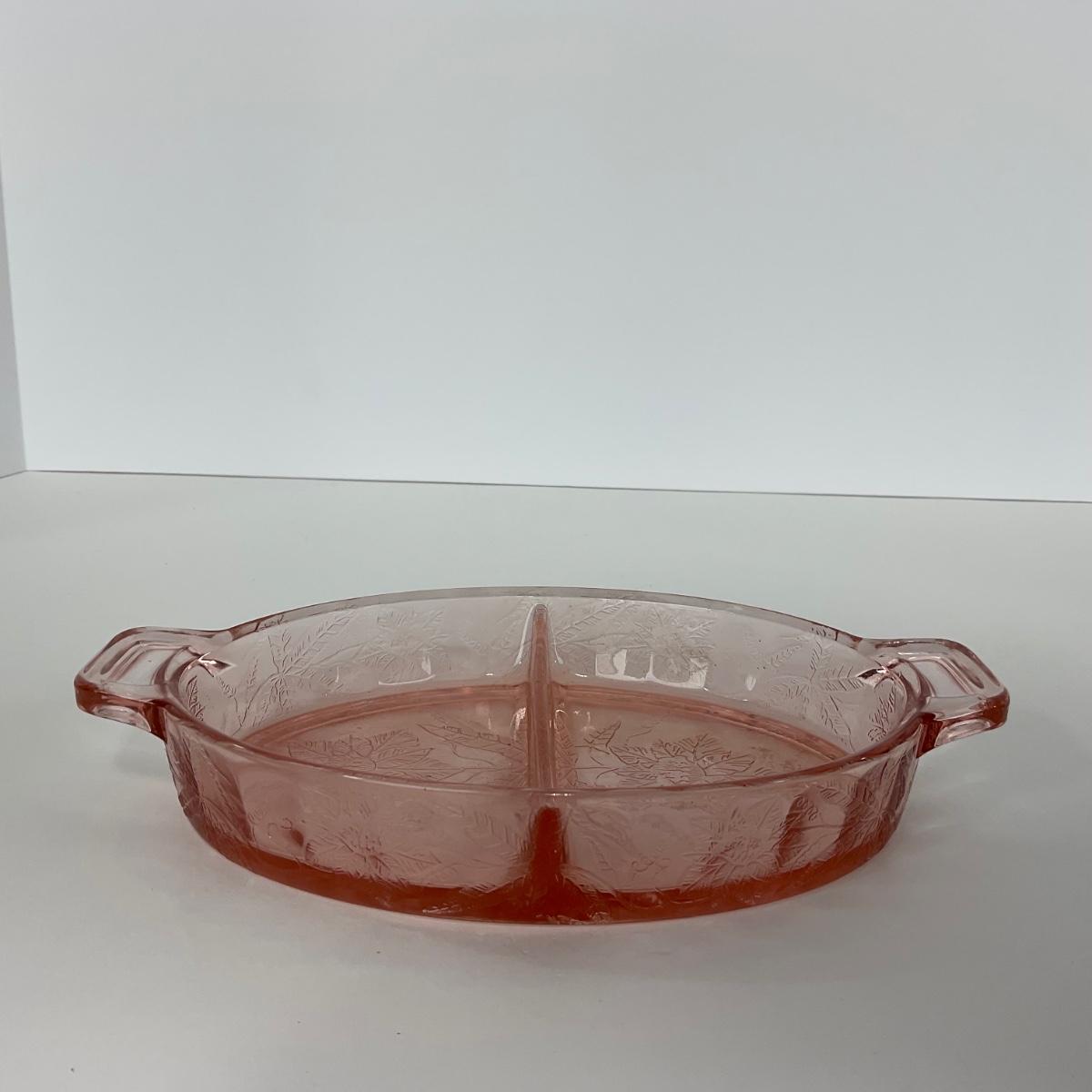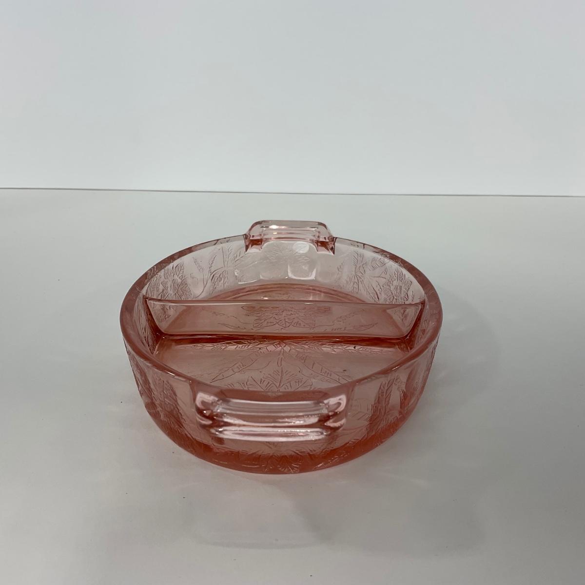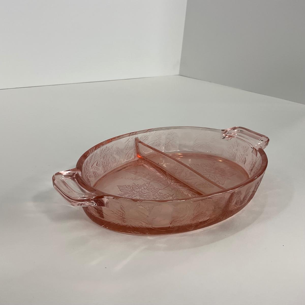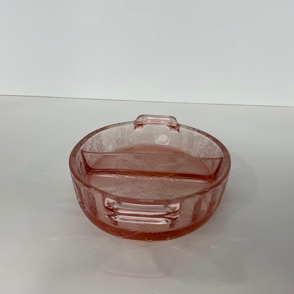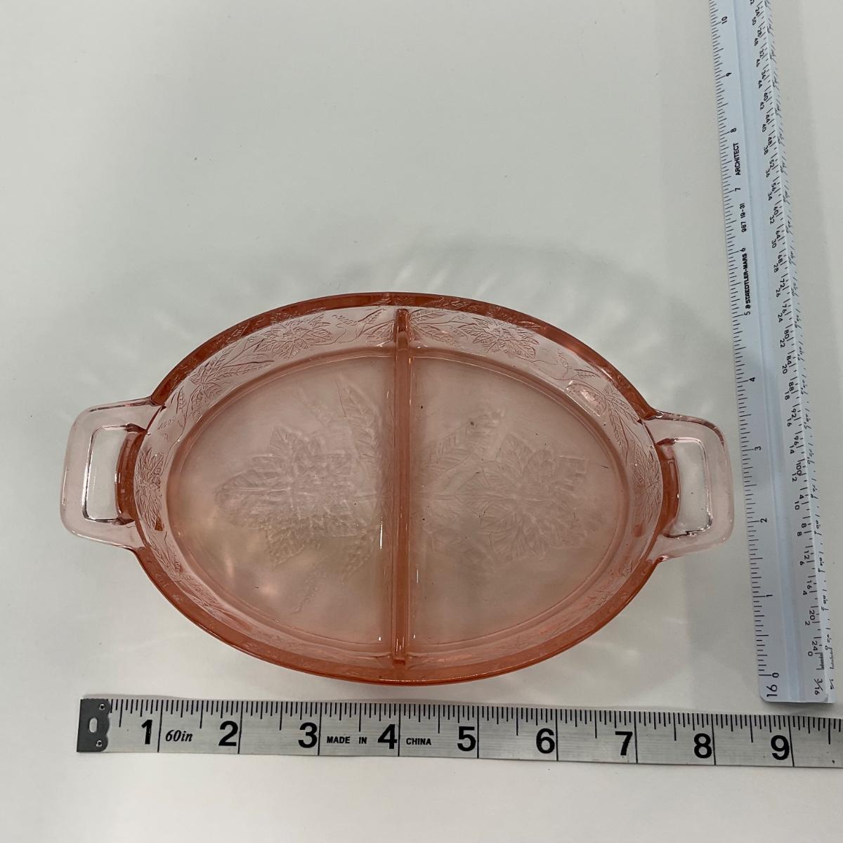 Two pieces of Floral “Poinsettia” Jeanette Glass Co. (1931-1935) including one pink depression divided dish and one green (I am Uranium glass so I DO GLOW under blacklight.) Shaker. Please see photos for details and condition. ::: Shipping is available on this lot. If you require shipping you must let us know at the close of the auction. We will coordinate with you after the item has been won. Shipping fees will include insurance up to or exceeding the value of all items being mailed. If you have any questions regarding this lot please contact the auctioneer either via this website, by direct email or by phone. PICK UP TIMES and other important information can be found in the TERMS and DESCRIPTION of the auction. Please take a look for pertinent information. Thanks!