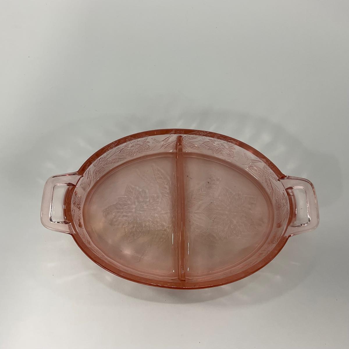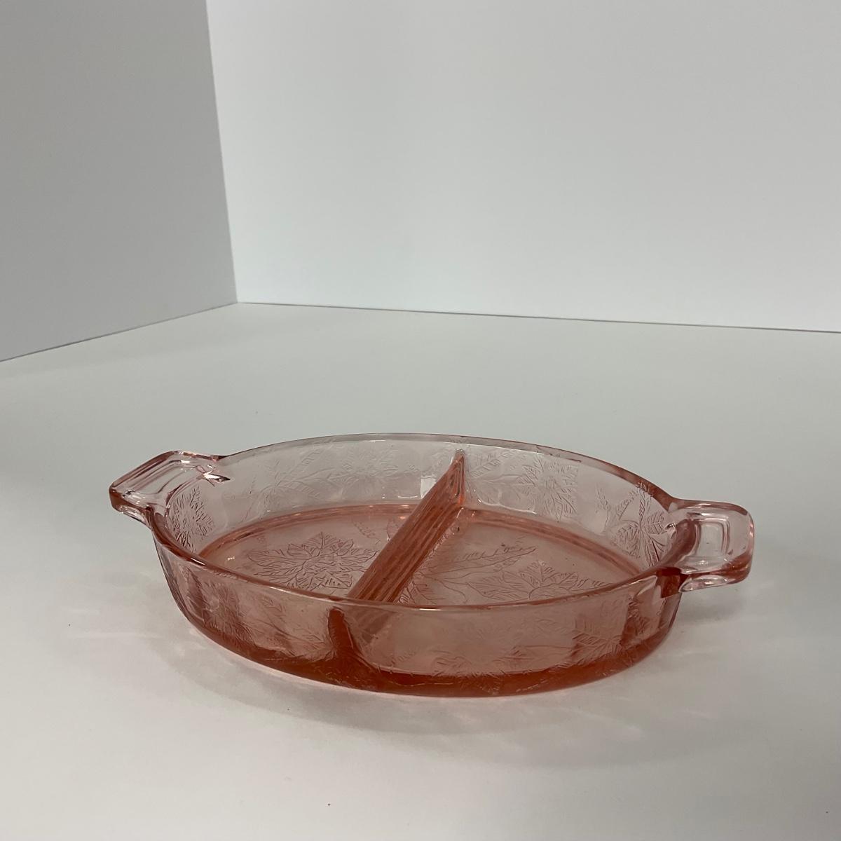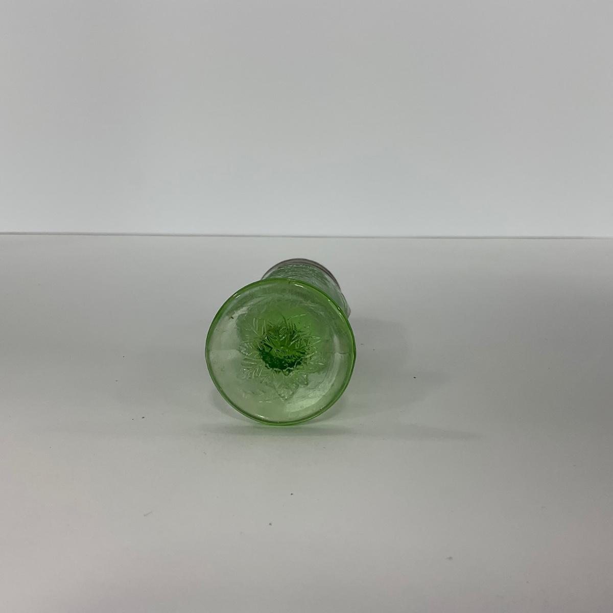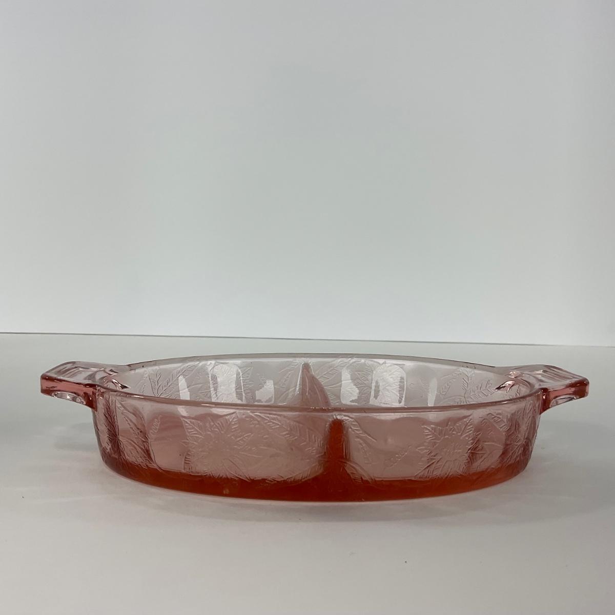 -161- URANIUM | Floral “Poinsettia” Jeanette Glass Co. | Divided Dish & Shaker