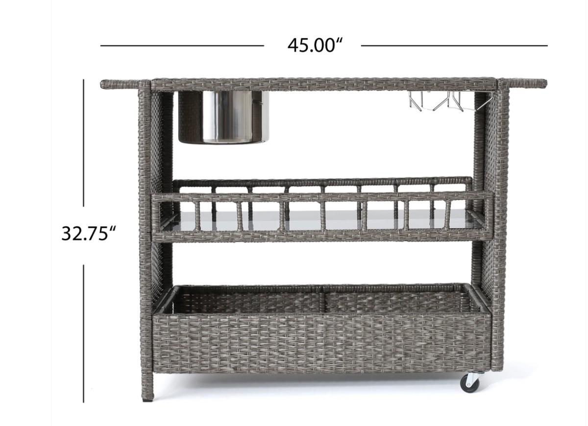 161 Waikiki Outdoor Fine Crafted Mixed Black Wicker Bar Serving Cart