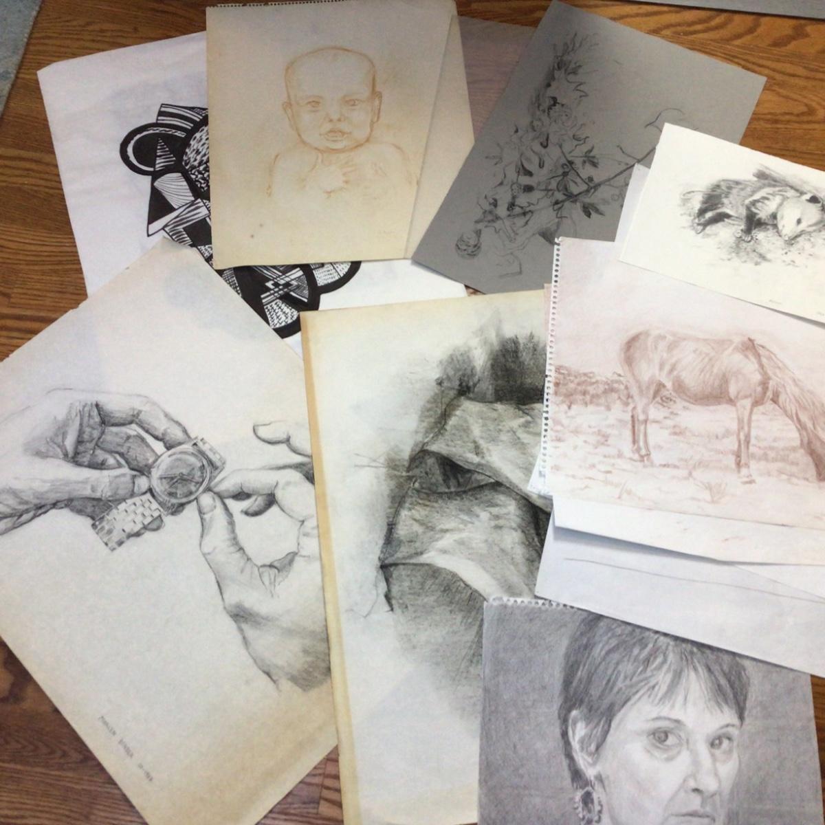All sketches are one of a kind works of art by local artist Marlen Binder, various sizes and subject matter.