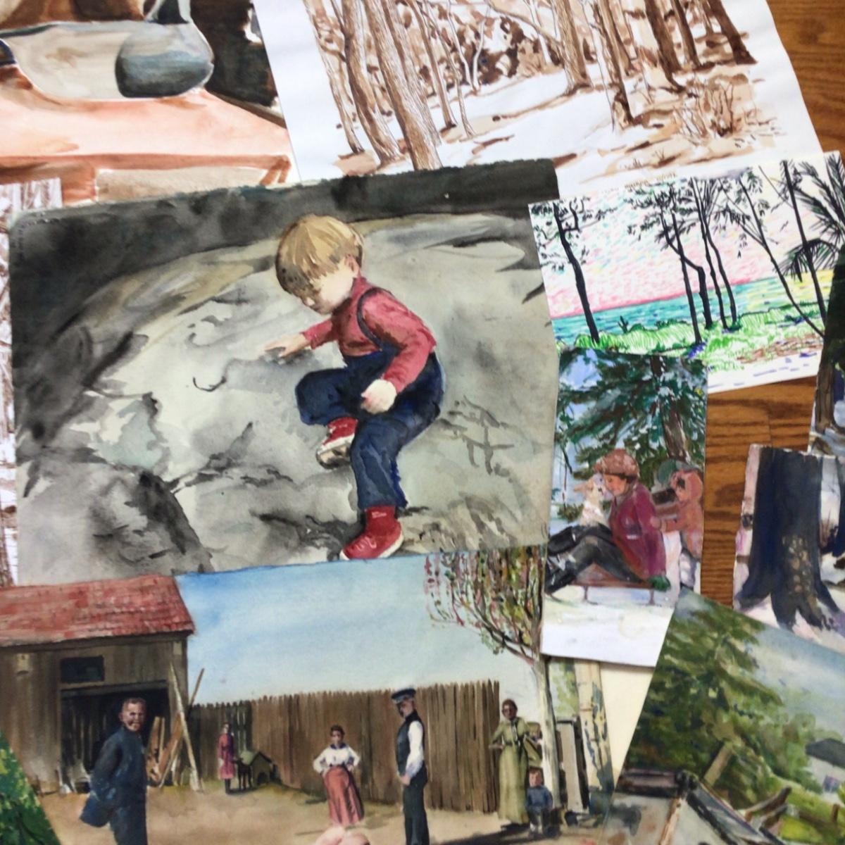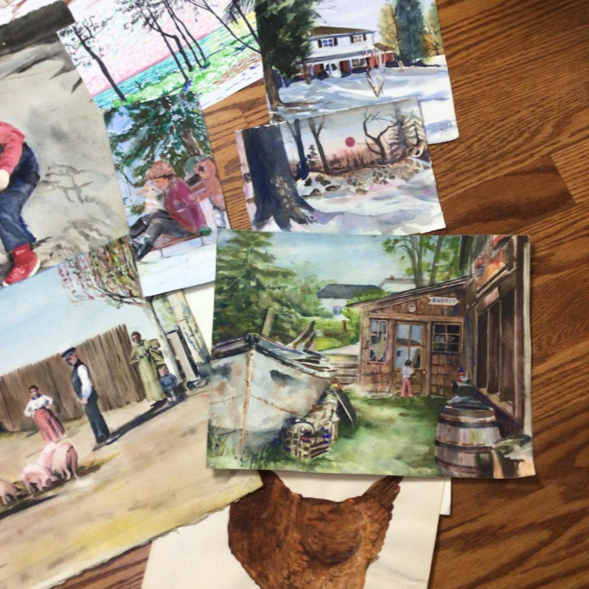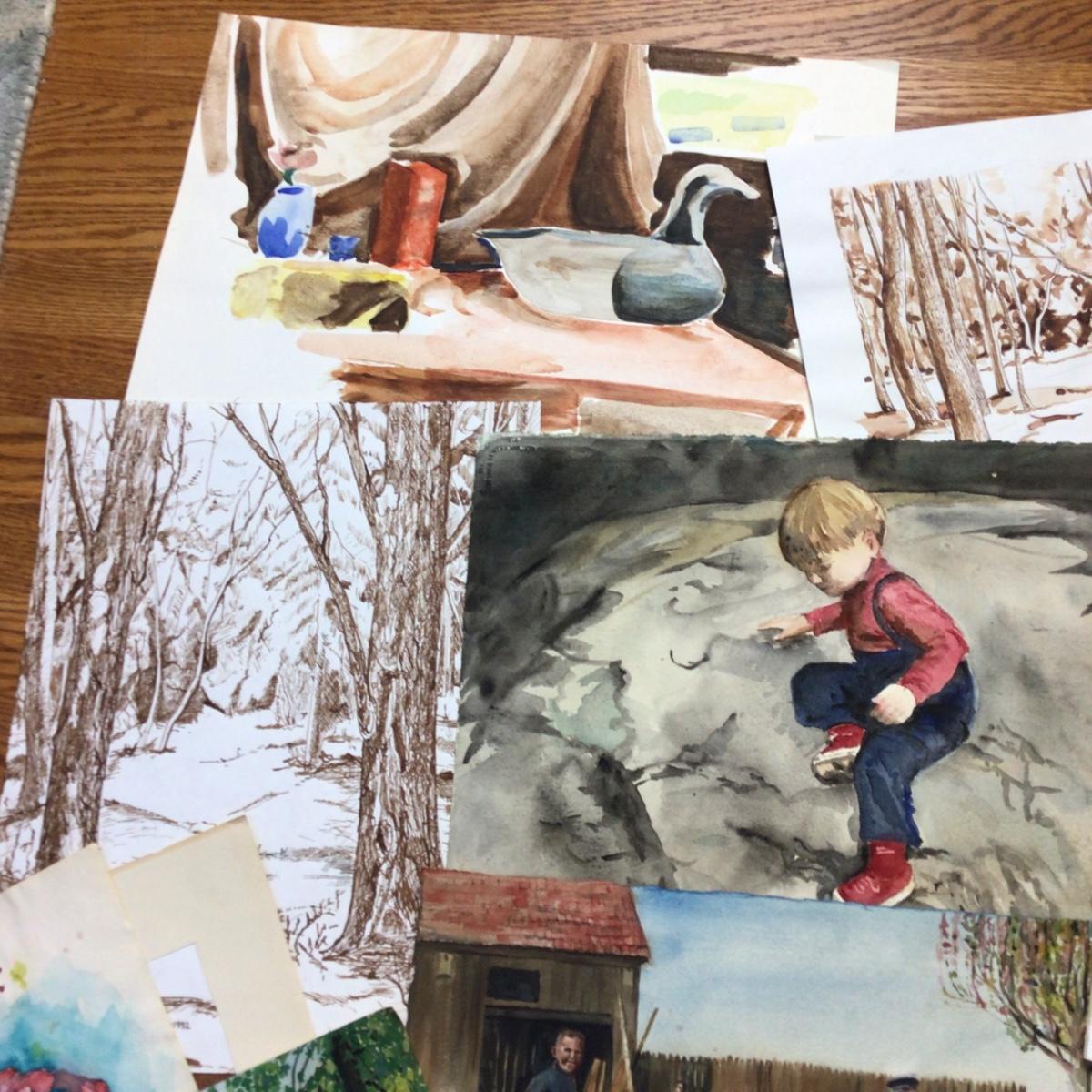 Portfolio lot of 15 paintings, all are on paper-various subjects and sizes. All items are original works of art and one of a kind by Marlen Binder.
