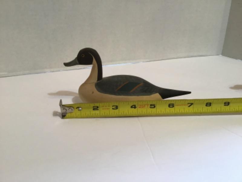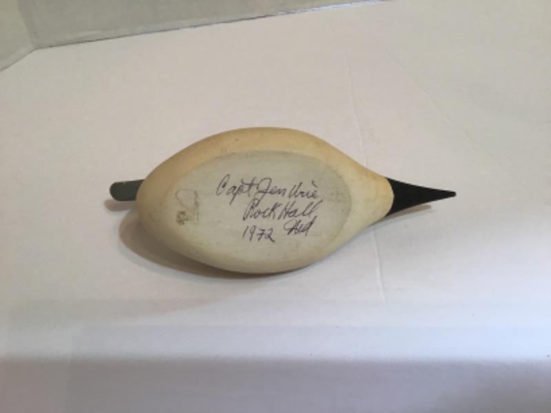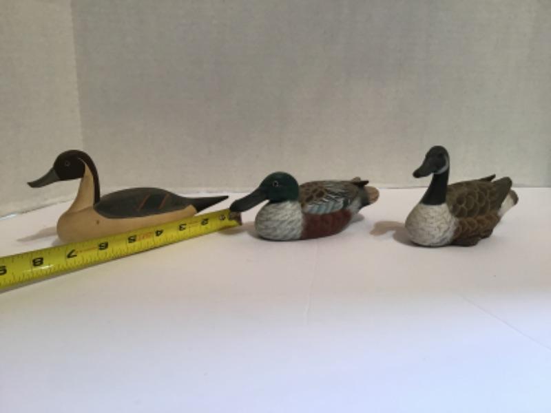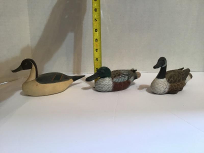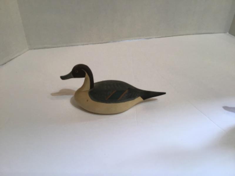 3 Wooden Miniature Decoys, 1 Signed by Capt. Jen Urie (from main picture the small one to the back with very little detail )