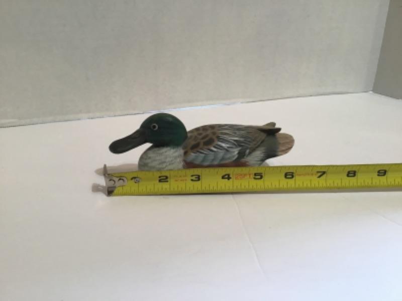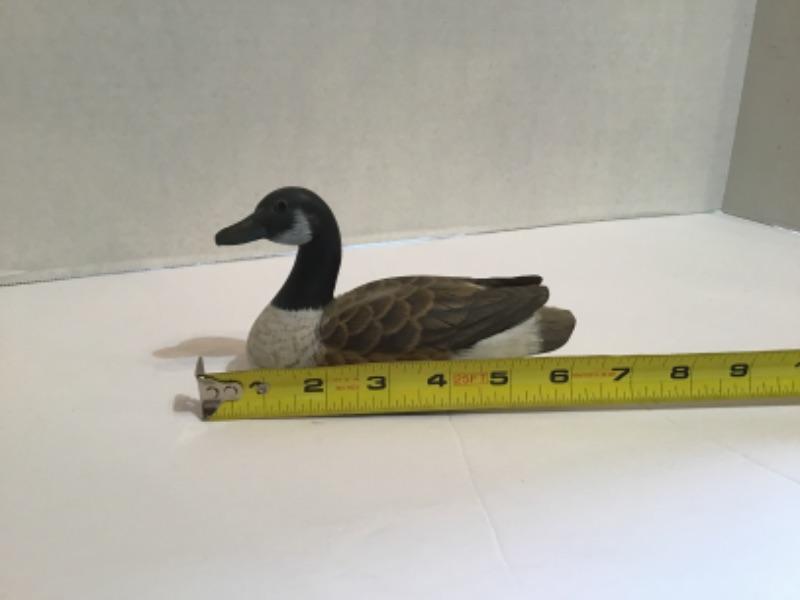 One Large Wooden Decoy measuring approximately 14.5" long x 7" tall x 6" wide ( his head spins and is not attached you can pull it off easily, there is a flaw on his beak )