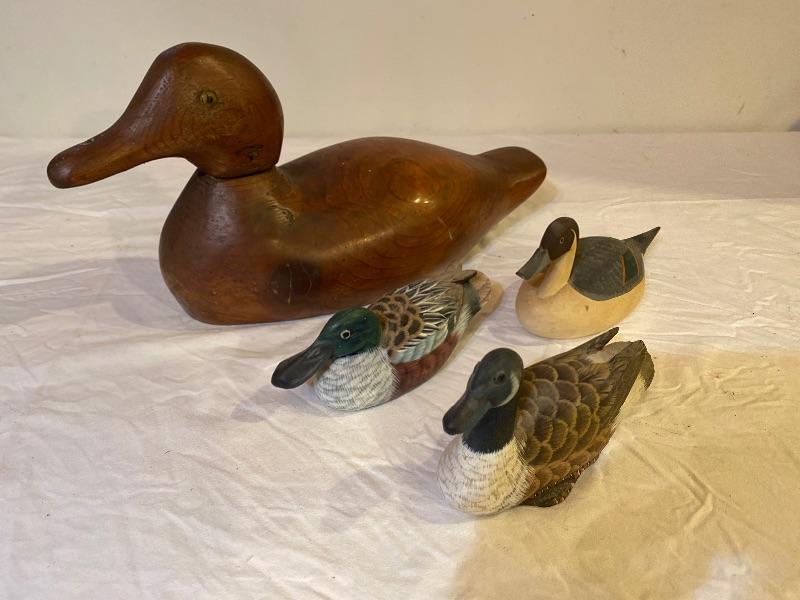 162  Lot of 3 Small Decoys and One Large Decoy Signed  by Capt. Jen Urie