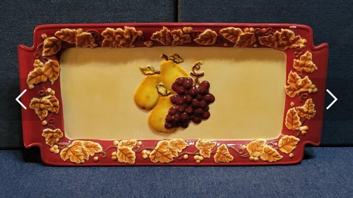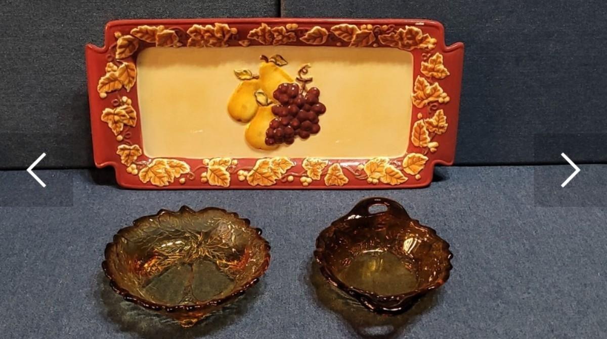 162: Fall Theme Platter and (2) TIARA Amber Glass Dishes