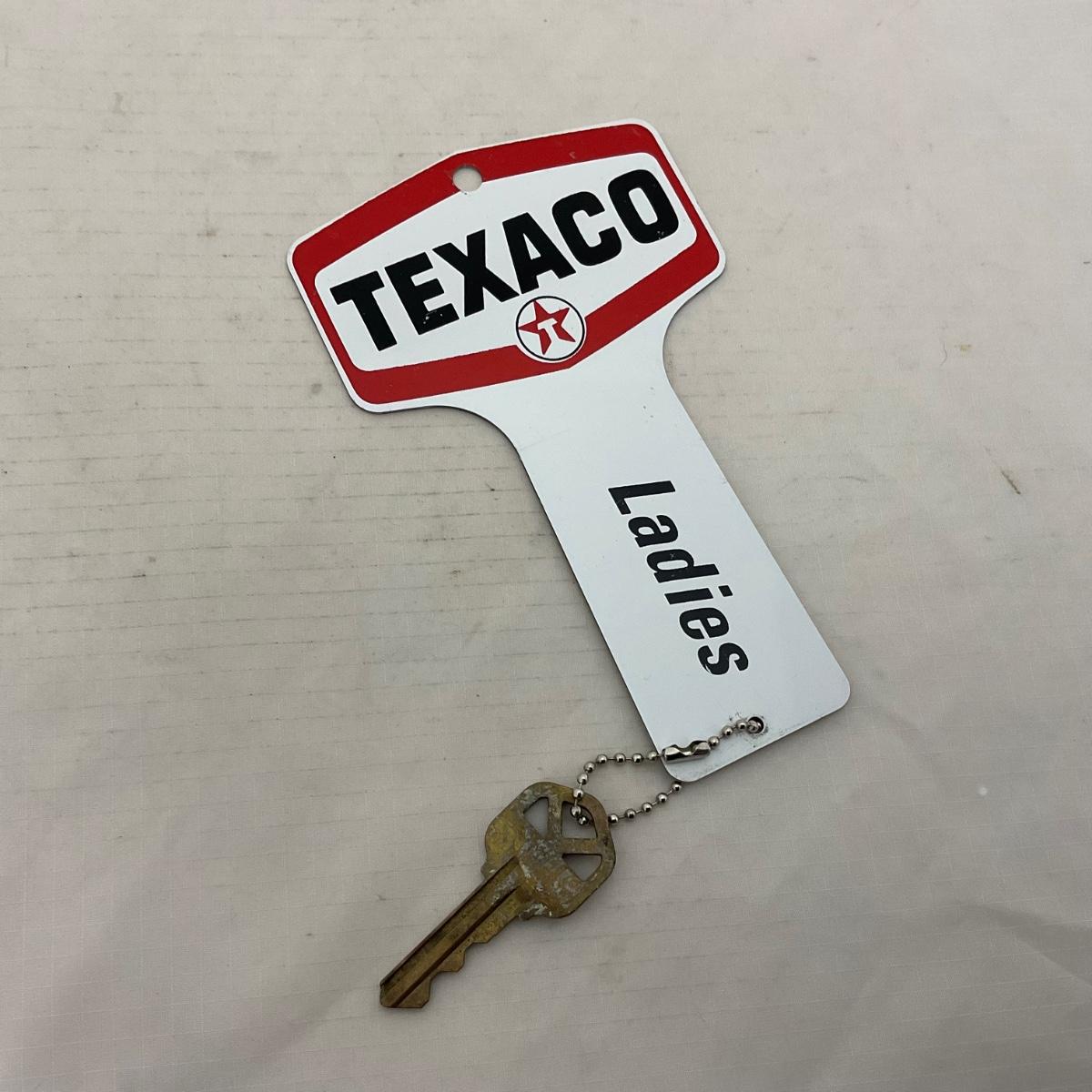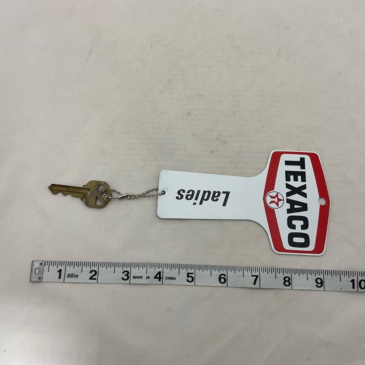 One vintage advertisement metal Texaco ladies room key holder and key. Please see photos for details and condition. ::: Shipping is available on this lot. If you require shipping you must let us know at the close of the auction. We will coordinate with you after the item has been won. Shipping fees will include insurance up to or exceeding the value of all items being mailed. If you have any questions regarding this lot please contact the auctioneer either via this website, by direct email or by phone. PICK UP TIMES and other important information can be found in the TERMS and DESCRIPTION of the auction. Please take a look for pertinent information. Thanks!