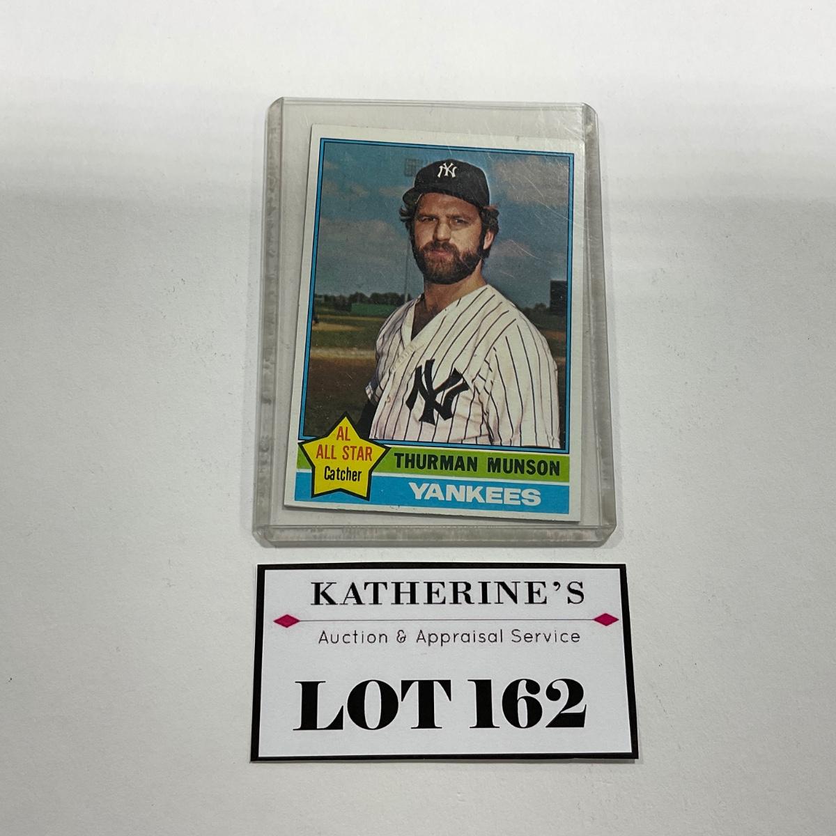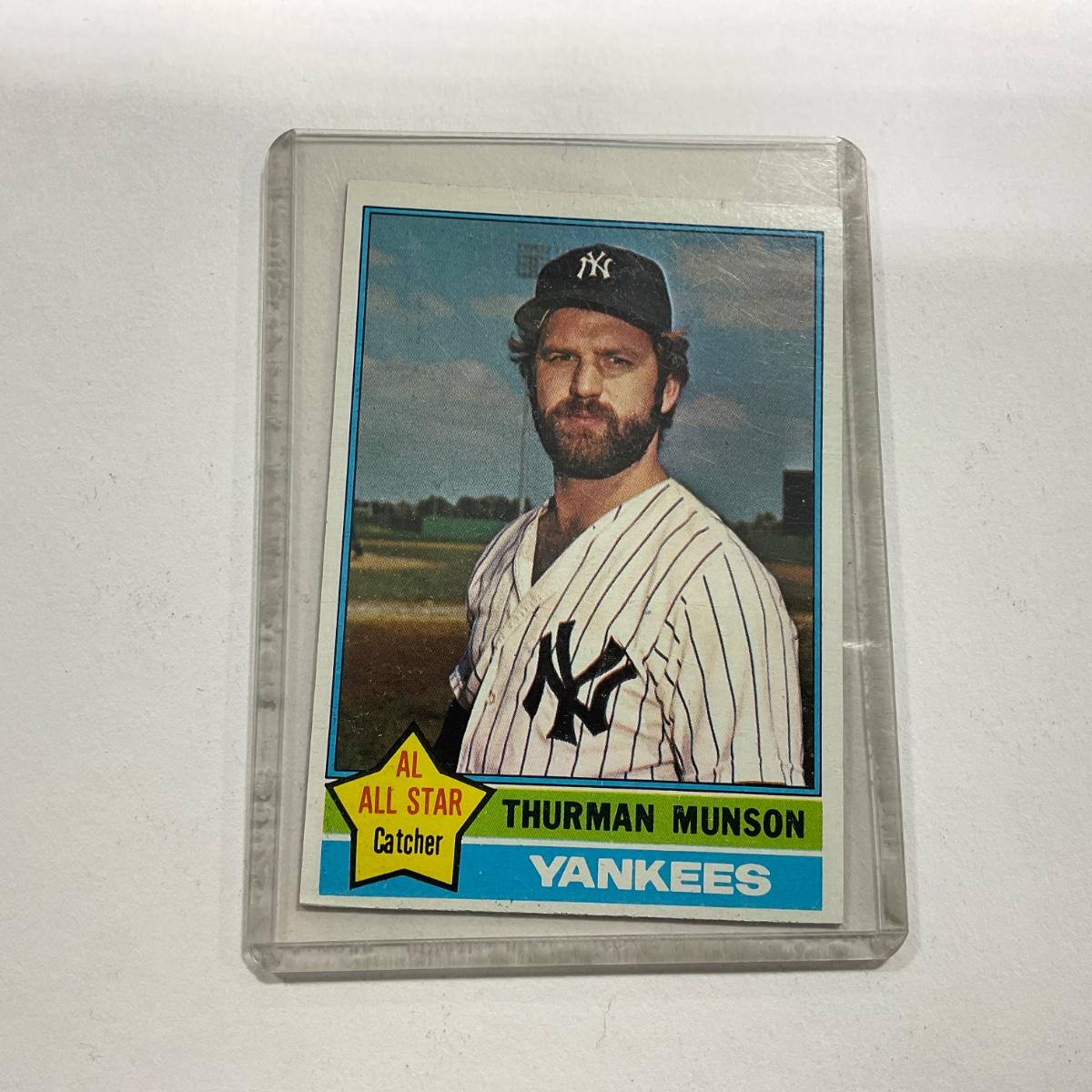 One 1976 Thurman Munson Yankees #650 Card. Please see photos for details and condition. ::: Shipping is available on this lot. If you require shipping you must let us know at the close of the auction. We will coordinate with you after the item has been won. Shipping fees will include insurance up to or exceeding the value of all items being mailed. If you have any questions regarding this lot please contact the auctioneer either via this website, by direct email or by phone. PICK UP TIMES and other important information can be found in the TERMS and DESCRIPTION of the auction. Please take a look for pertinent information. Thanks!