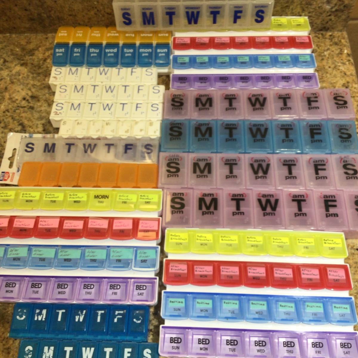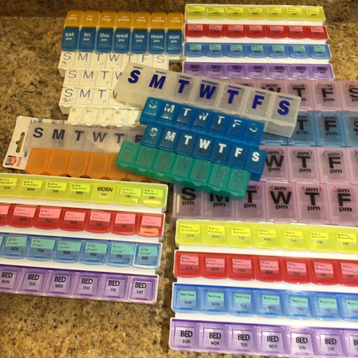 Pill organizers is various sizes-great for organizing jewelry or craft supplies as well as medication.