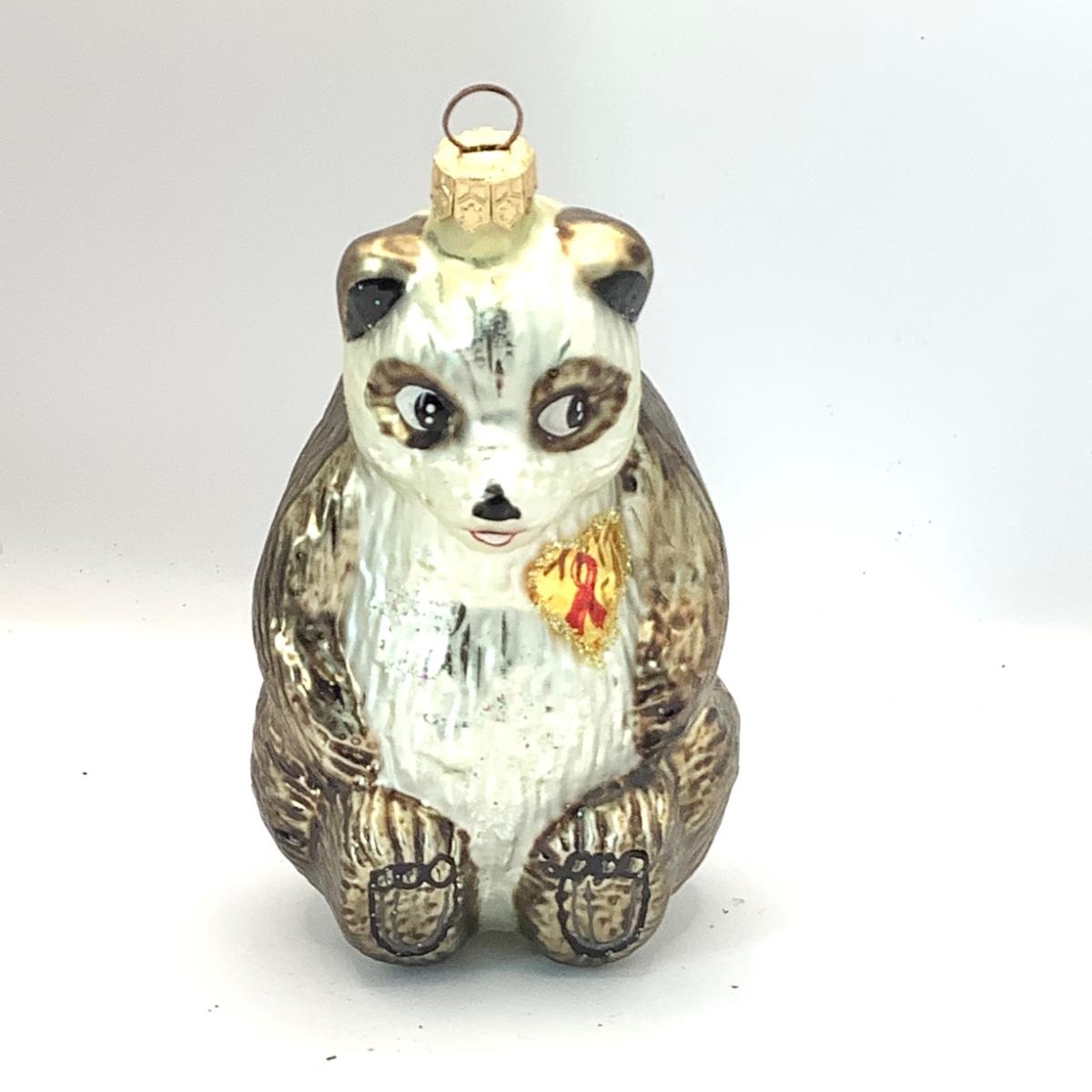1623 Christopher Radko 1996 Winter Bear's Heart Aids Awareness Glass Ornament