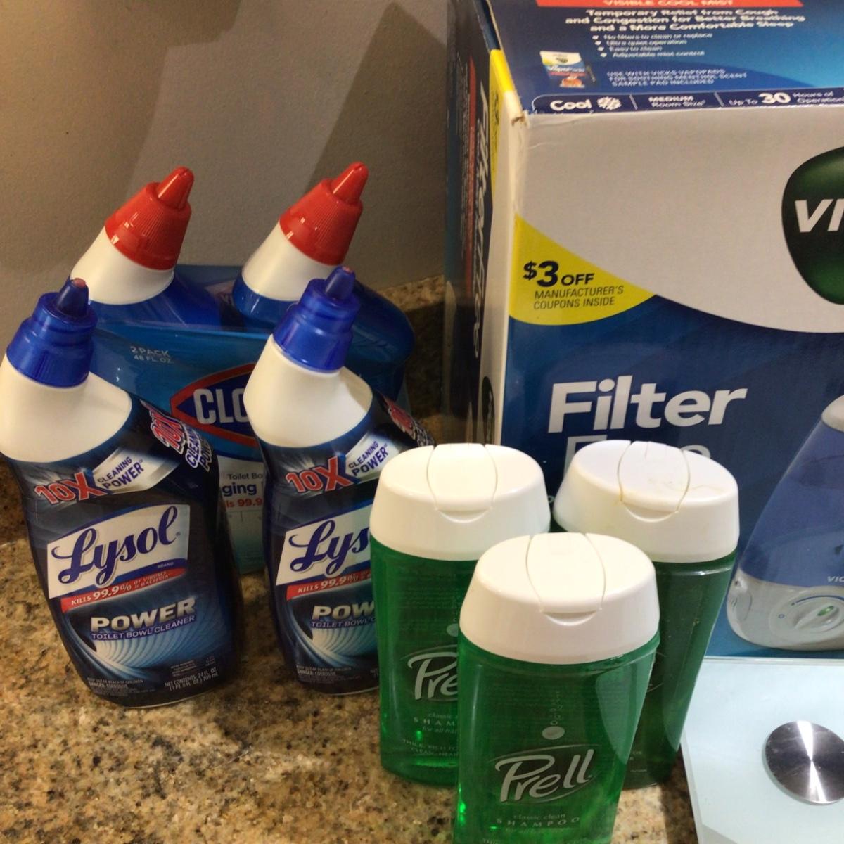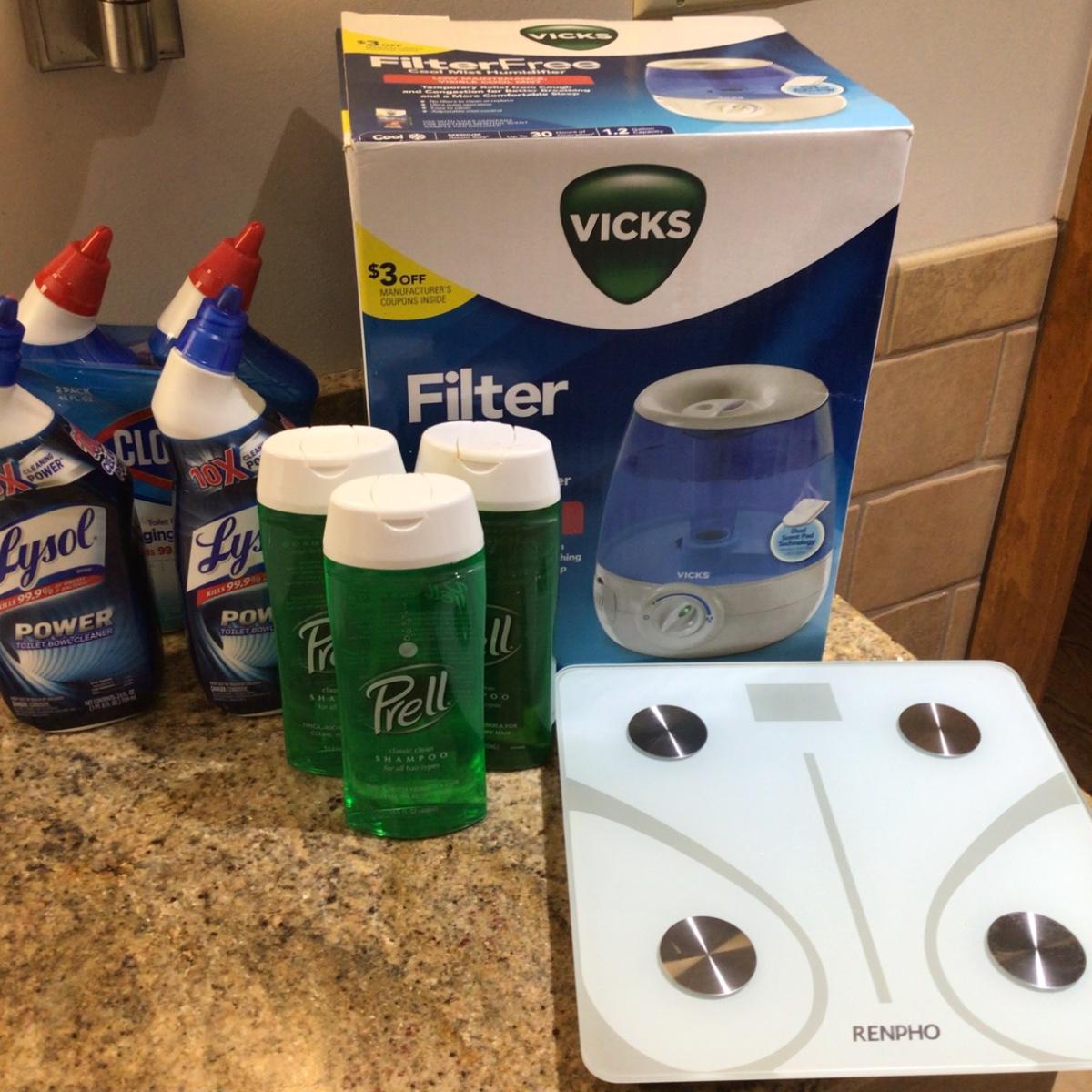 Renpho Scale, Vicks Humidifier and new Lysol cleaning supplies and Prell Shampoo.