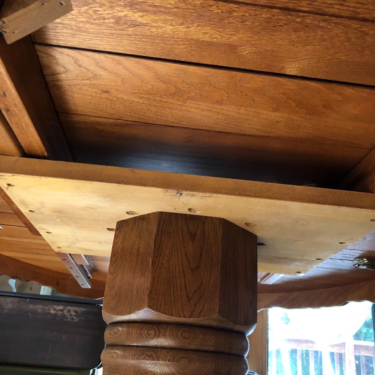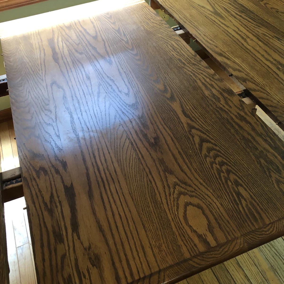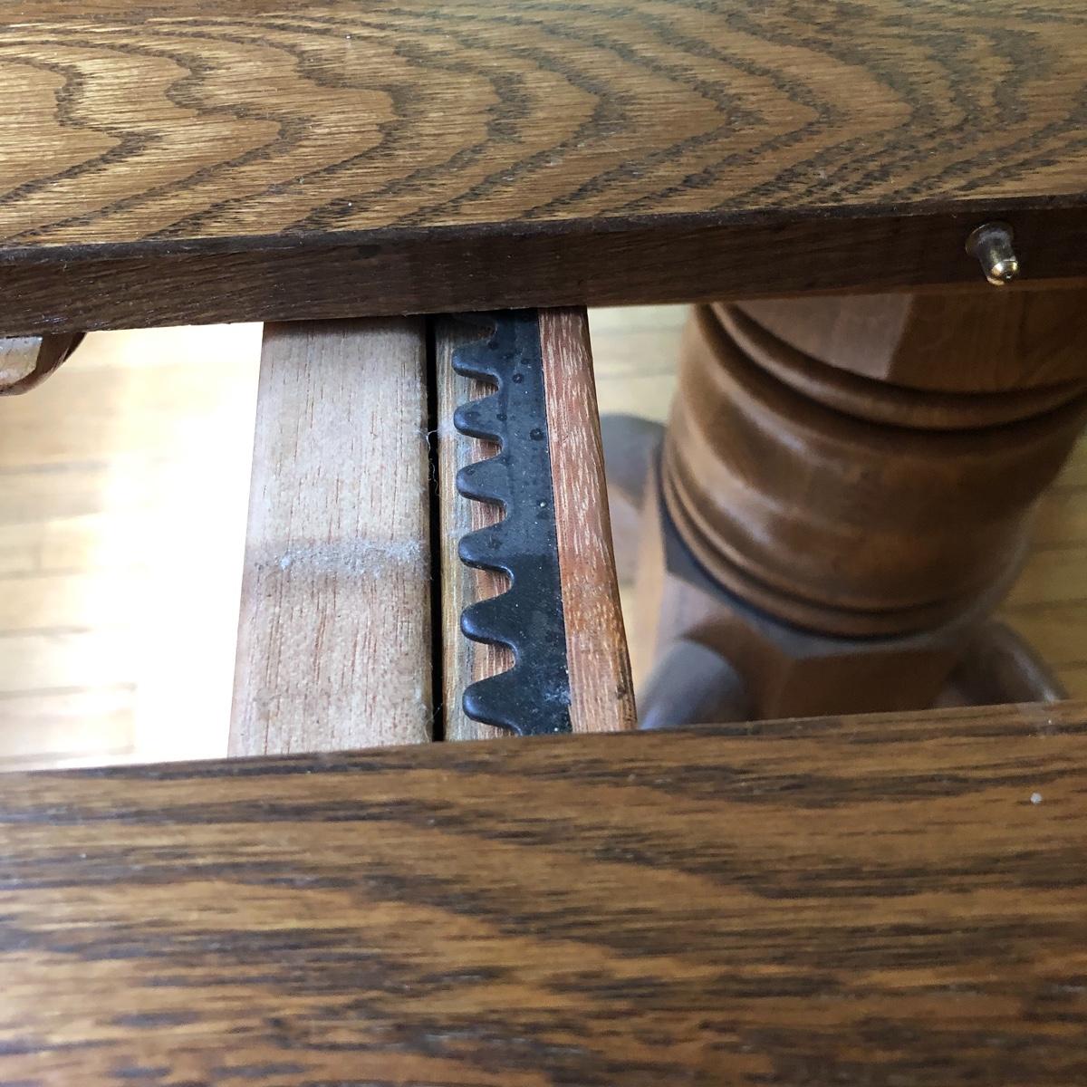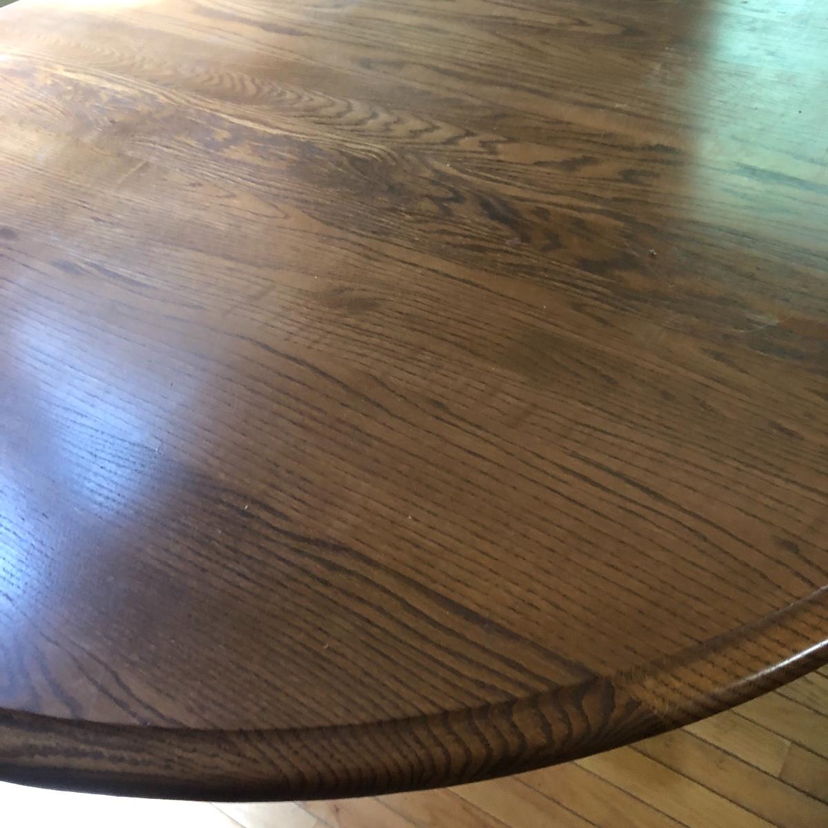 Enjoy meals on this sturdy oak Clawfoot table! Note how it expands with the leaf. With the leaf, it measures 48” x 72”. Without the leaf, the table becomes round and measures 48” in diameter. Also, note the detail edging. There are a few faint marks on the top of the table which will come out with polish. Local pick up only.