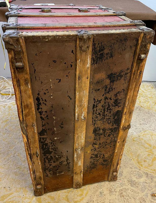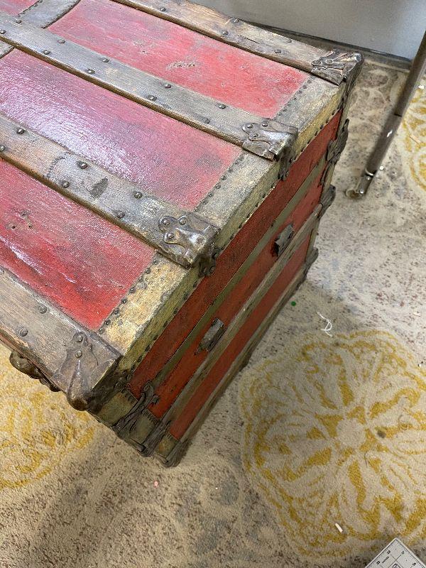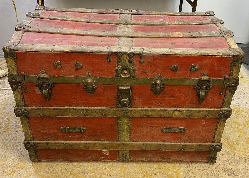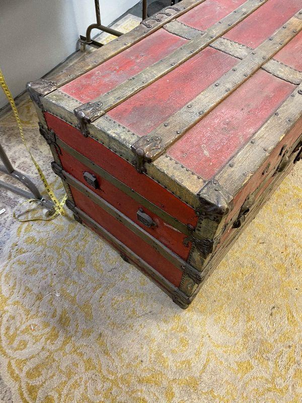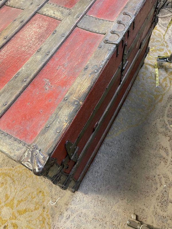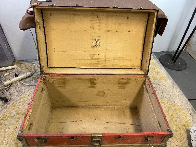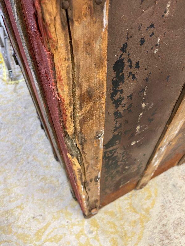 Used Shows wear - 36 x 22 x 24 Reddish Color - No Top Tray Cracked on the Bottom