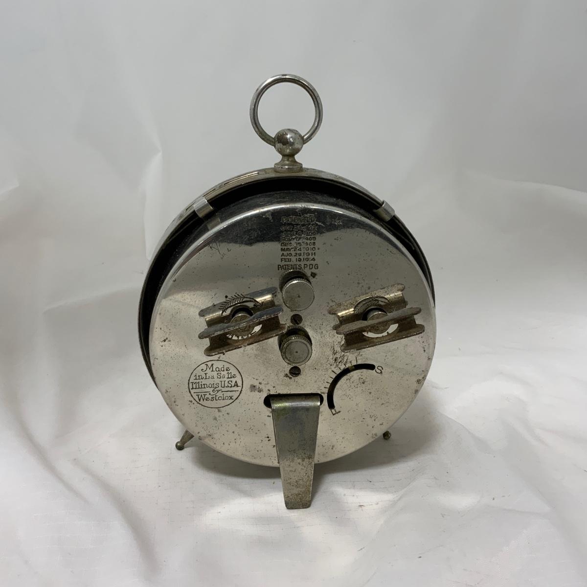 A classic alarm clock! Something you see cartoon characters throwing across their bedroom. This clock works well, but could use a cleaning to be at it’s optimal level. Please see photos for details and condition. ::: Shipping is available on this lot. If you require shipping you must let us know at the close of the auction. We will coordinate with you after the item has been won. Shipping fees will include insurance up to or exceeding the value of all items being mailed. If you have any questions regarding this lot please contact the auctioneer either via this website, by direct email or by phone. PICK UP TIMES and other important information can be found in the TERMS and DESCRIPTION of the auction. Please take a look for pertinent information. Thanks!