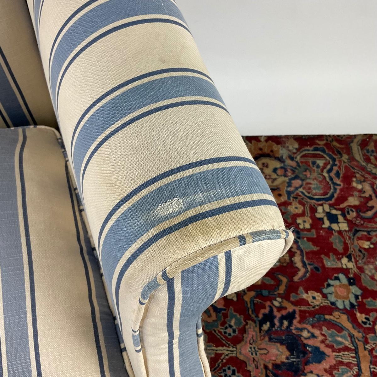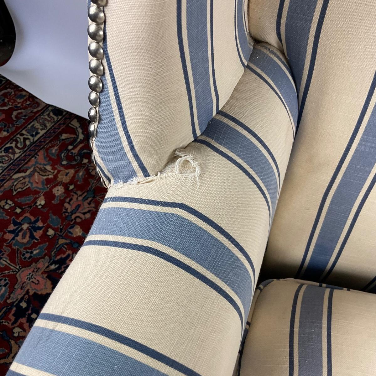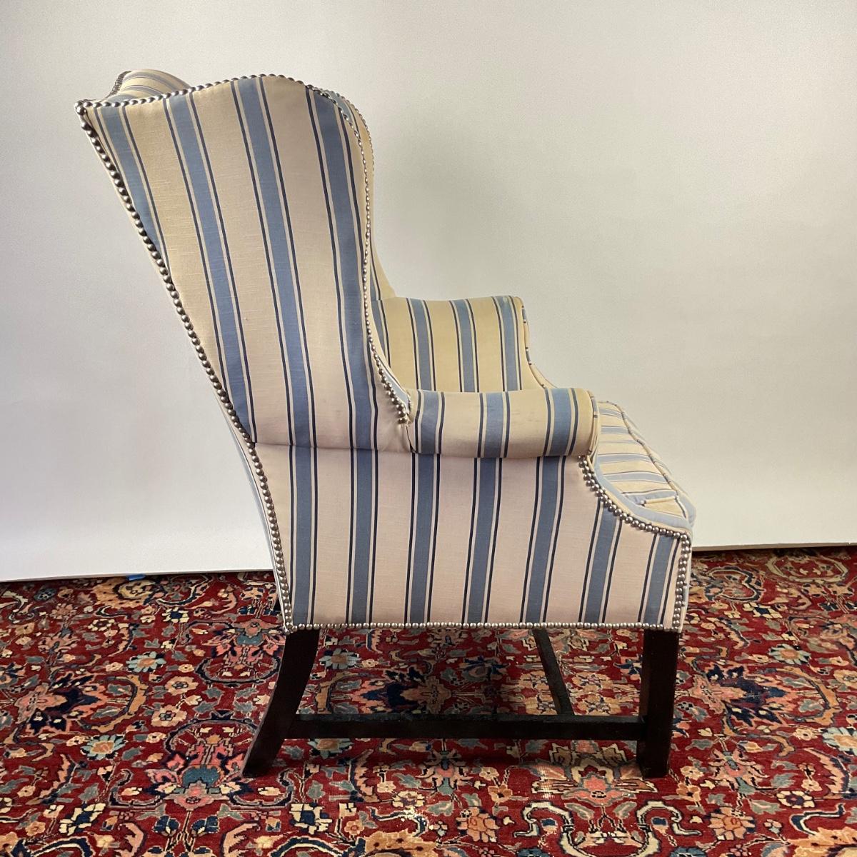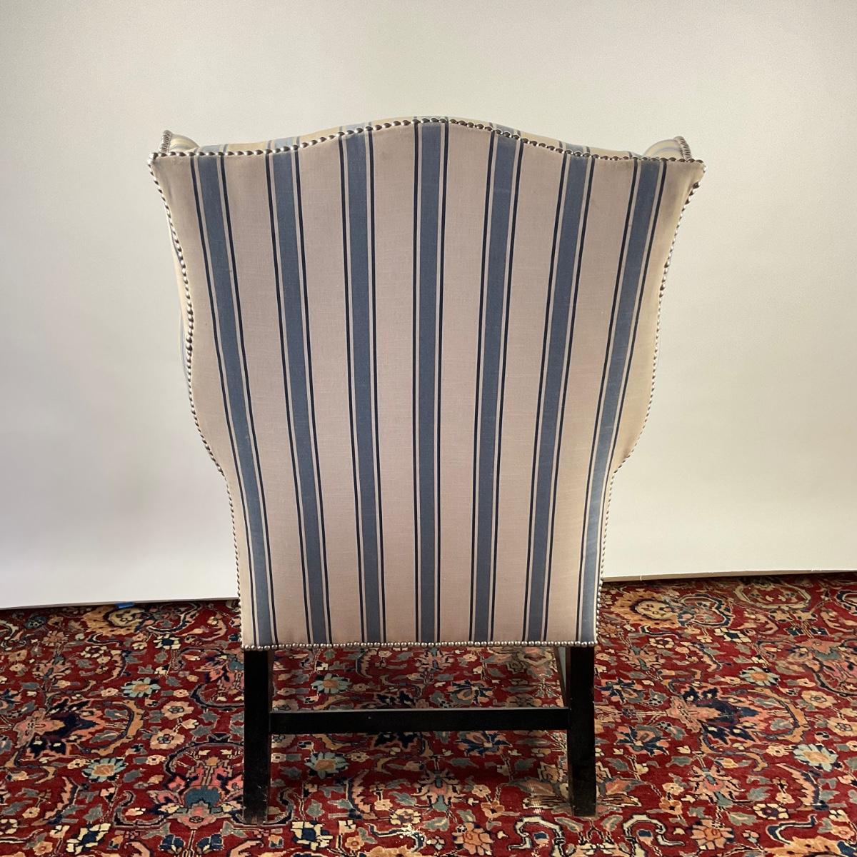 163 Blue & White Striped Wingback Chair with Silver Tac Trim
