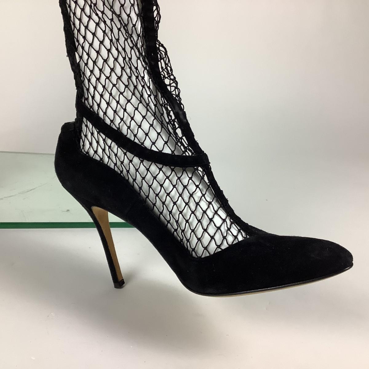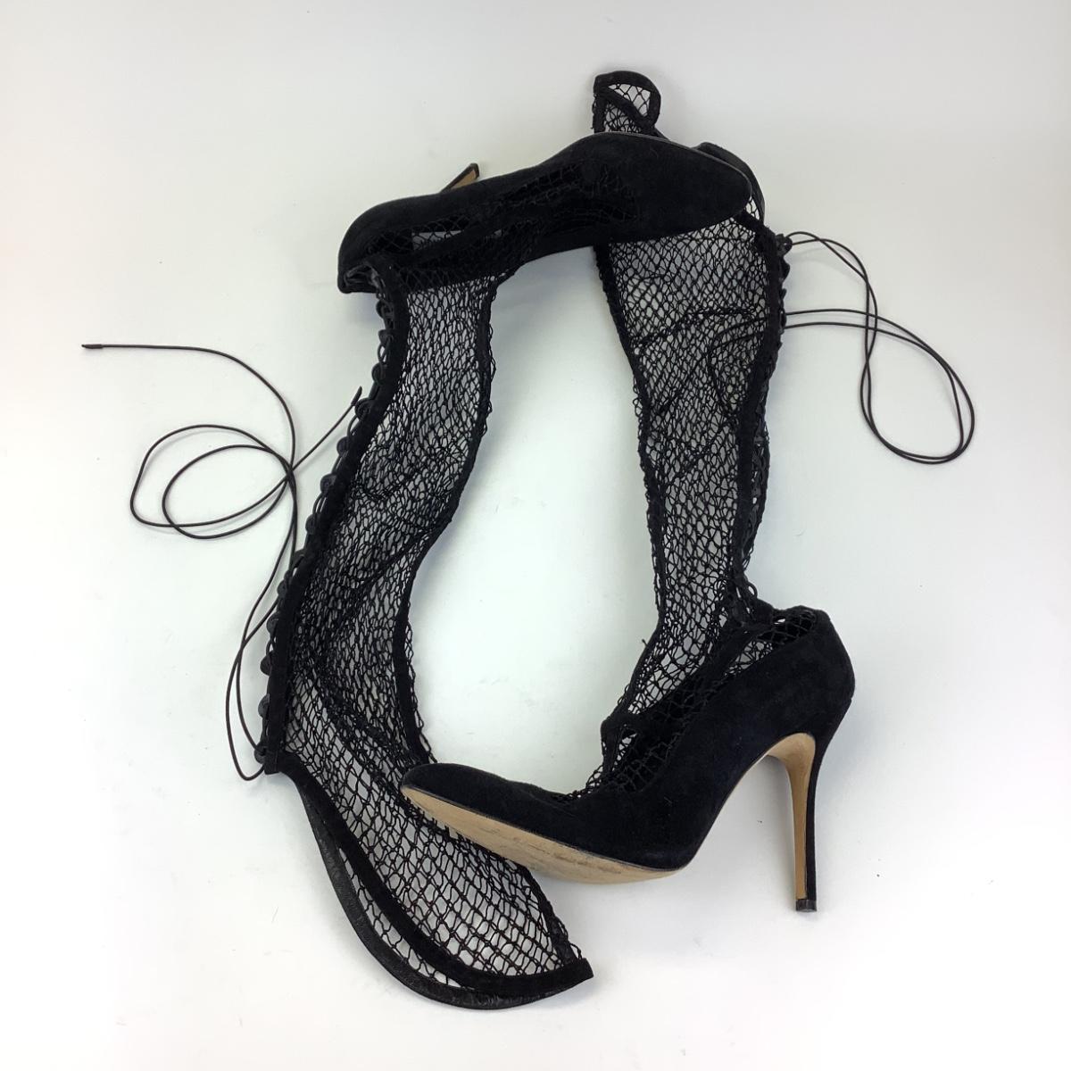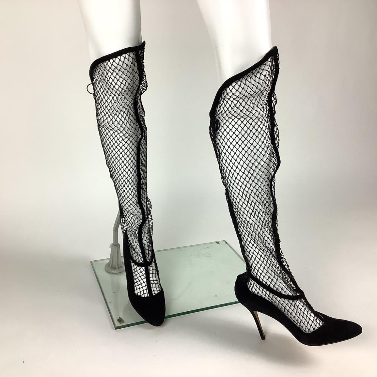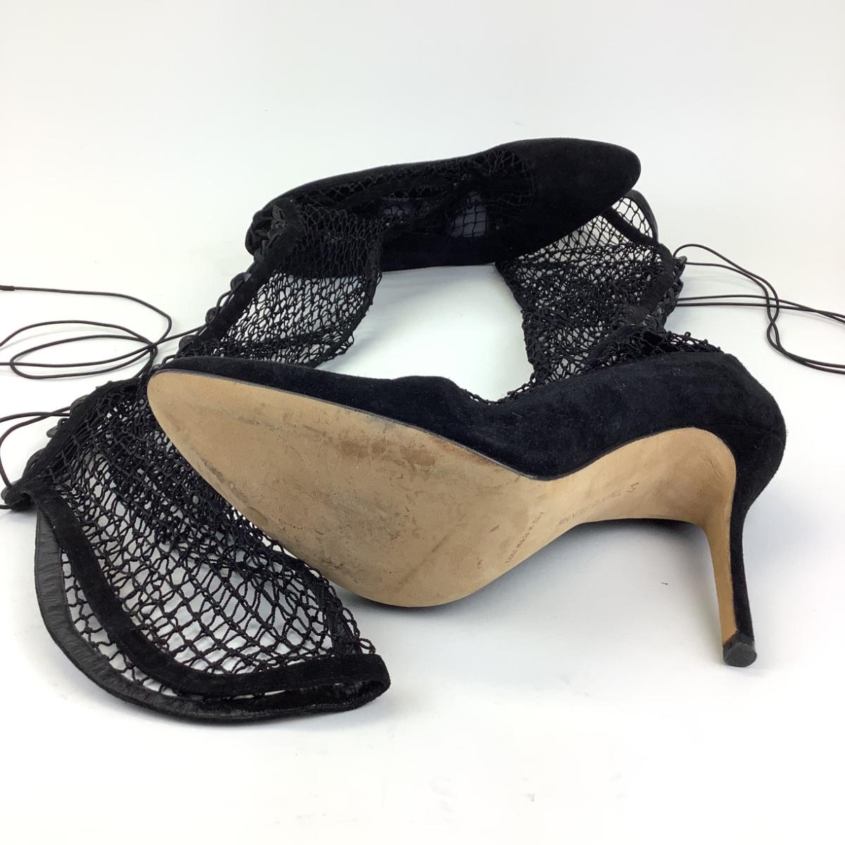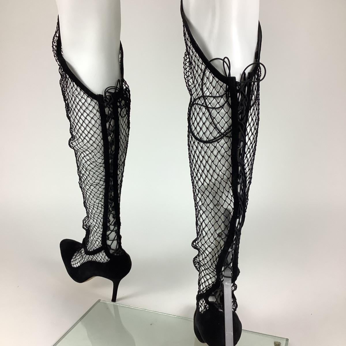 163 MANOLO BLAHNIK Black Suede/Laced Knee High Heels Size 41