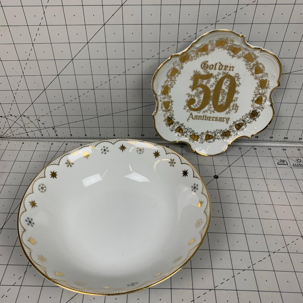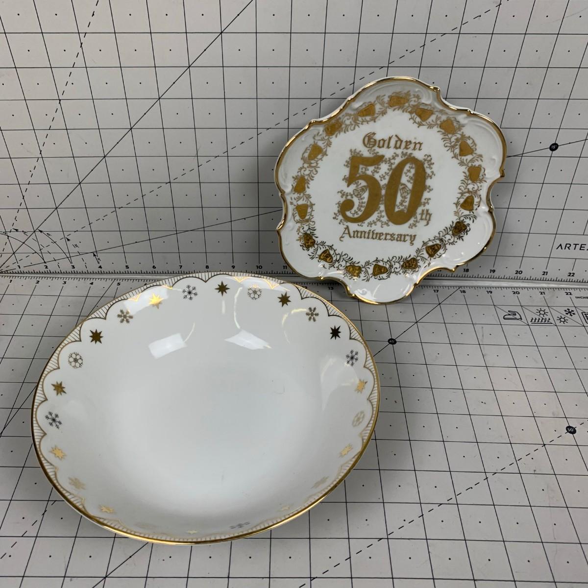 #163 Norcrest 50th Anniversary Plate & Gold/White Bowl