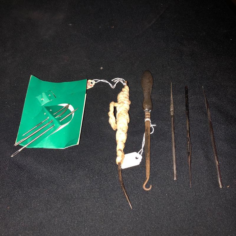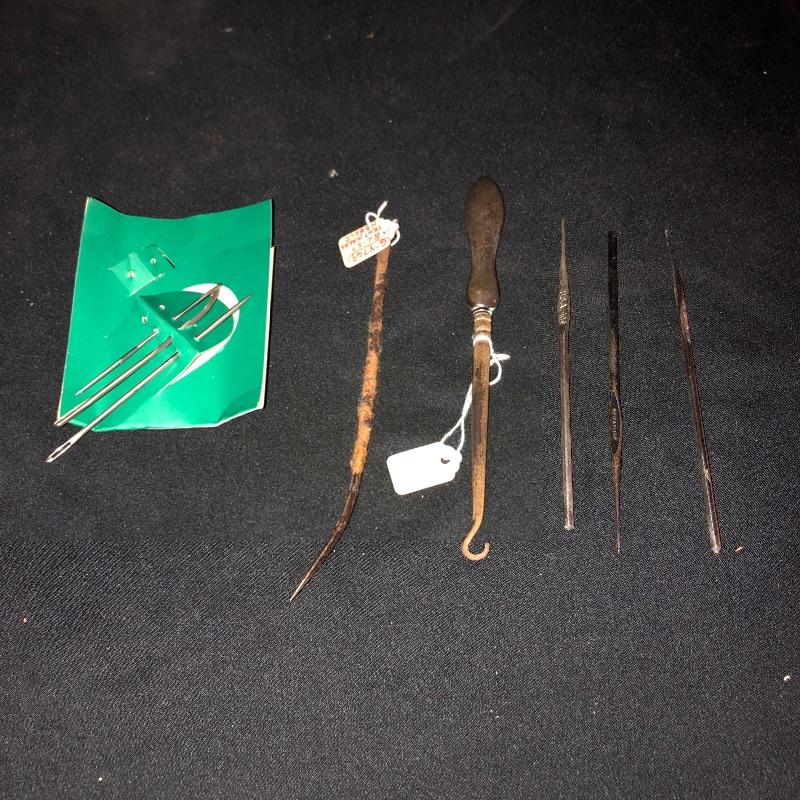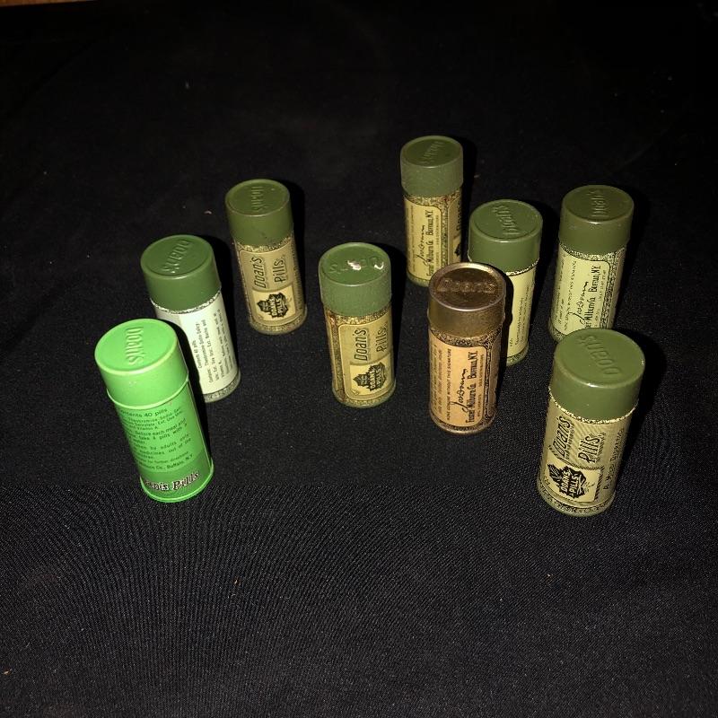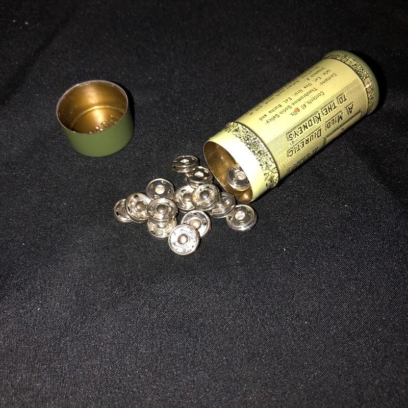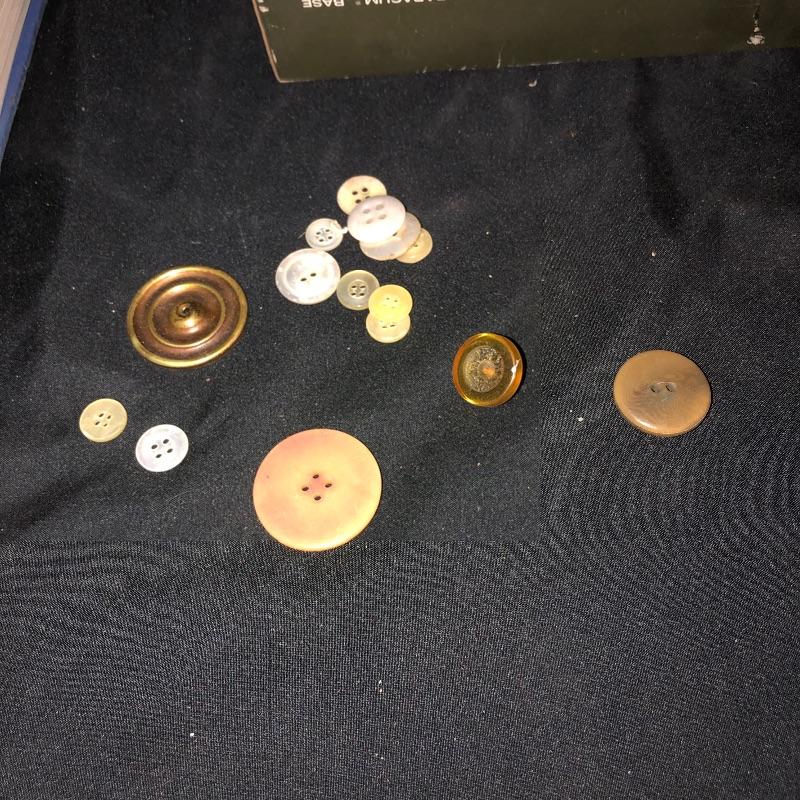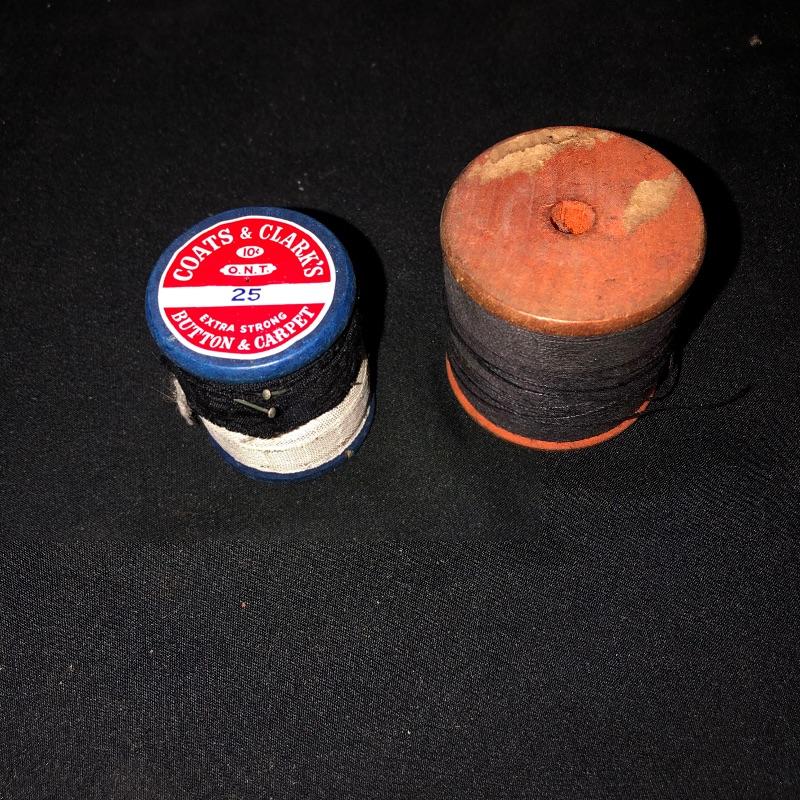 If you or a loved one sew for fun or for your career, this lot is for you! It offers a myriad of buttons, from small white ones, to flowery ones, to every day buttons that match almost anything. This lot includes several “Doan’s Pills” bottles filled with all different kinds of buttons, several different wooden and metal spools of thread, a vintage skirt marker, two books detailing different sewing techniques and so much more! Shipping available.