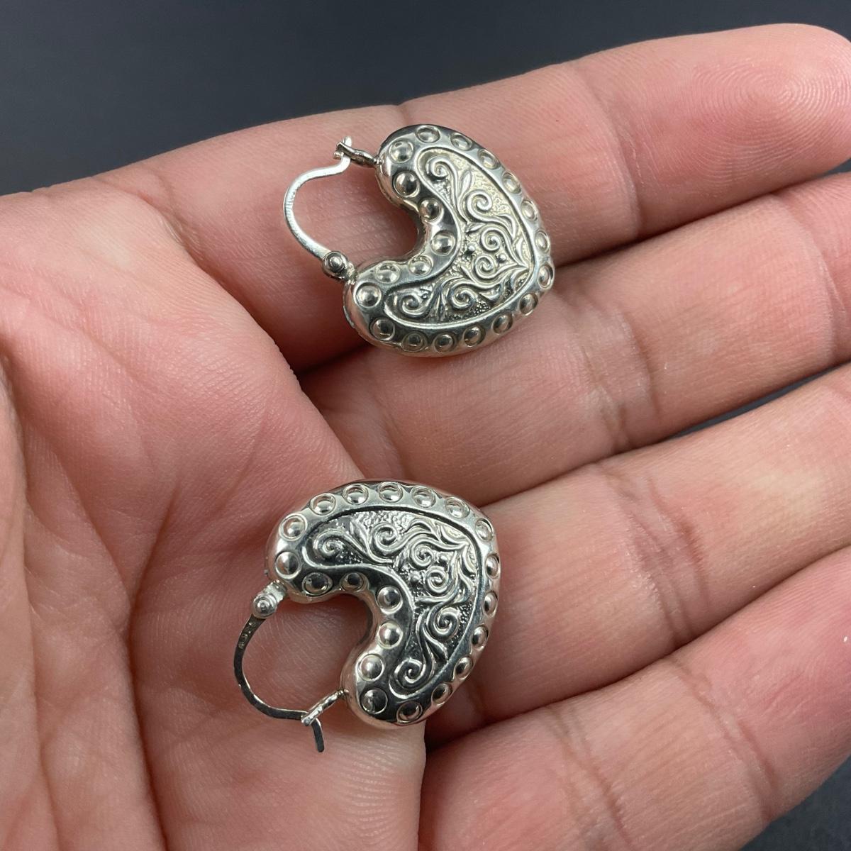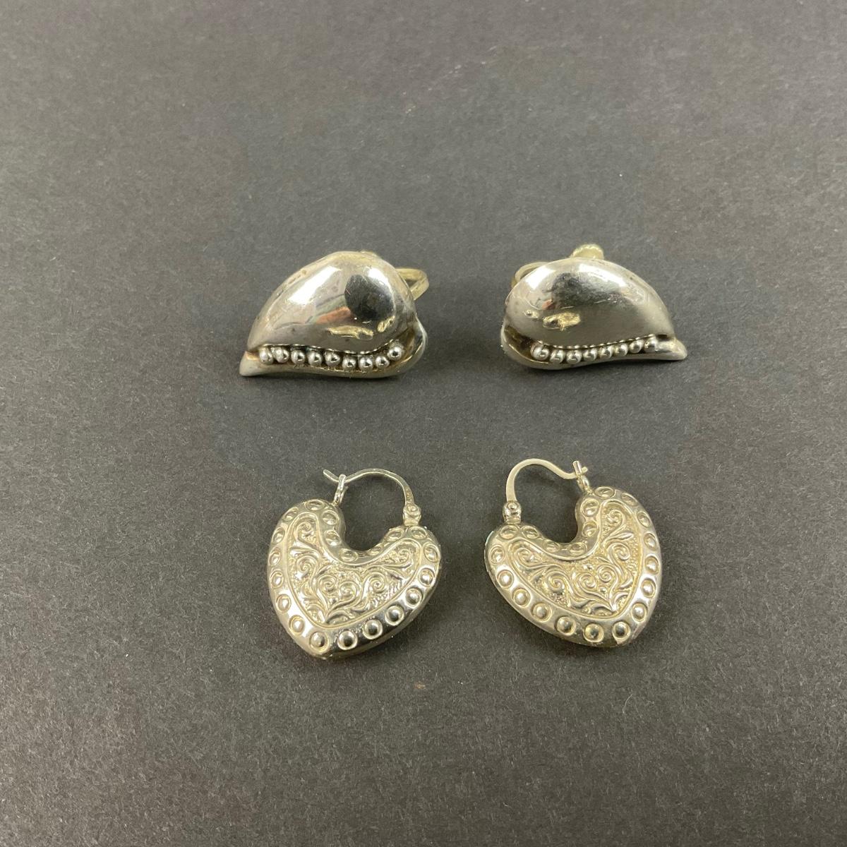 Two pair of sterling silver 925 marked earrings. The total weight of these pieces is 8.4 grams. Please see photos for details and condition. Any condition statement is given as a courtesy to a client, is an opinion, and should not be treated as a statement of fact. Reference to condition written, oral or within a condition report shall not be regarded as a full account of condition and may not include all defects, alterations, or restorations. Absence of a condition report does not imply a lot is flawless or lacking imperfections or damage. Katherine’s Auction & Appraisal Service shall have no responsibility for any error or omission. Returns shall not be accepted on the basis of condition. ::: Shipping is available on this lot. If you require shipping you must let us know at the close of the auction. We will coordinate with you after the item has been won. Shipping fees will include insurance up to or exceeding the value of all items being mailed. If you have any questions regarding this lot please contact the auctioneer either via this website, by direct email or by phone. PICK UP TIMES and other important information can be found in the TERMS and DESCRIPTION of the auction. Please take a look for pertinent information. Thanks!