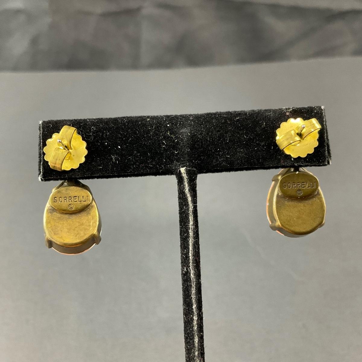 One pair of marked peach and purple colored Sorrelli earrings. This piece has no damage, and appears to be in great shape with no visable chips, cracks, or broken pieces. Please see photos for details and condition. Any condition statement is given as a courtesy to a client, is an opinion, and should not be treated as a statement of fact. Reference to condition written, oral or within a condition report shall not be regarded as a full account of condition and may not include all defects, alterations, or restorations. Absence of a condition report does not imply a lot is flawless or lacking imperfections or damage. Katherine’s Auction & Appraisal Service shall have no responsibility for any error or omission. Returns shall not be accepted on the basis of condition. ::: Shipping is available on this lot. If you require shipping you must let us know at the close of the auction. We will coordinate with you after the item has been won. Shipping fees will include insurance up to or exceeding the value of all items being mailed. If you have any questions regarding this lot please contact the auctioneer either via this website, by direct email or by phone. PICK UP TIMES and other important information can be found in the TERMS and DESCRIPTION of the auction. Please take a look for pertinent information. Thanks!