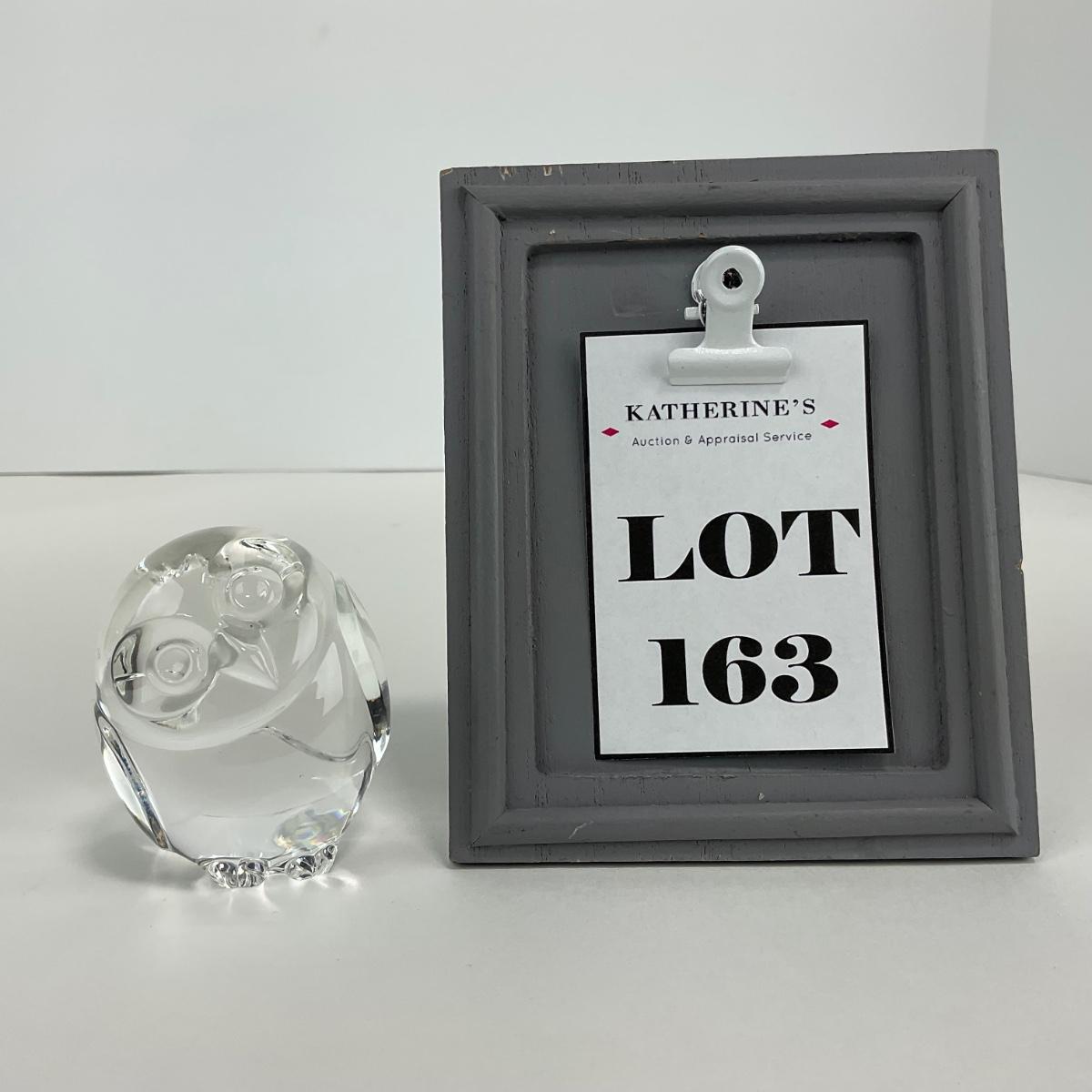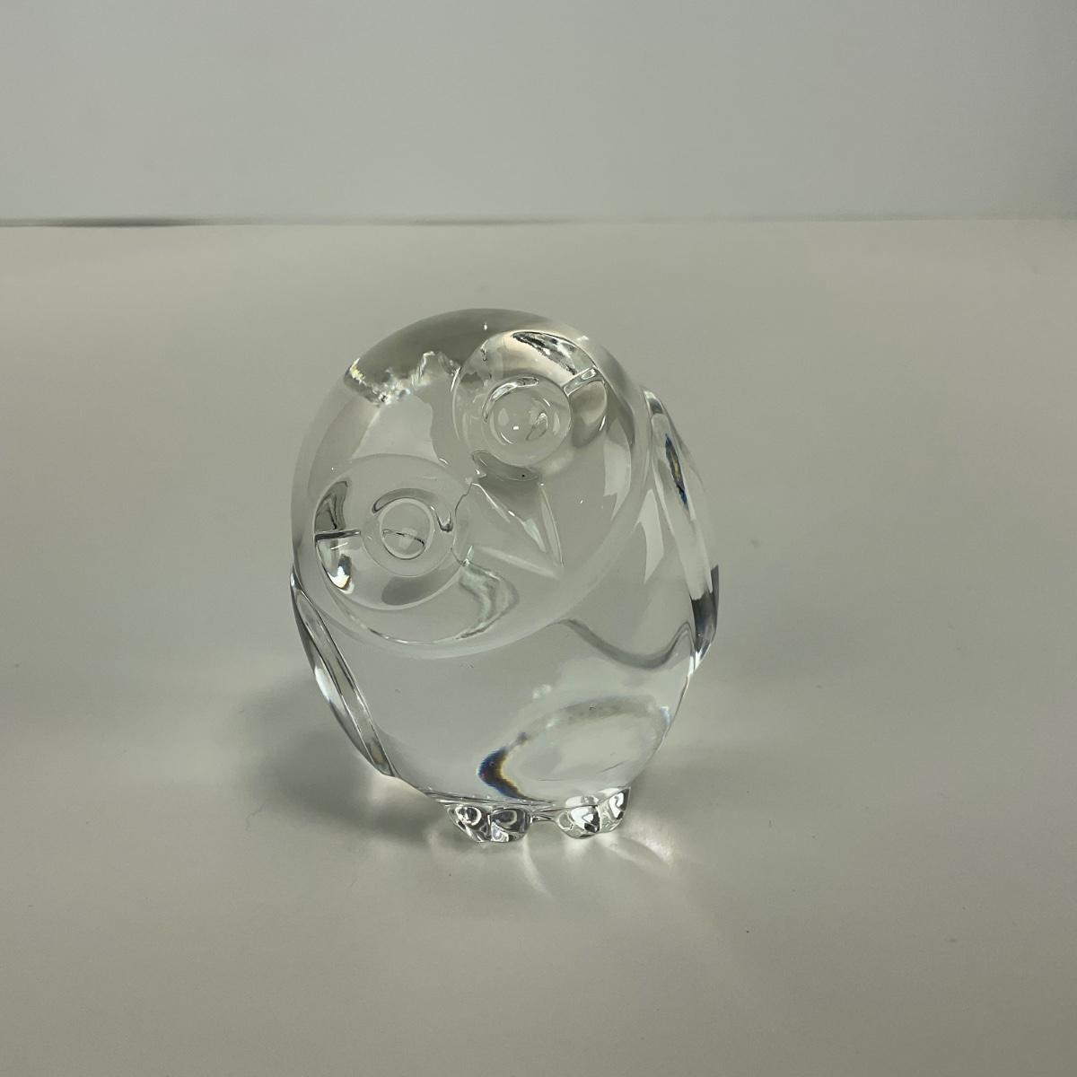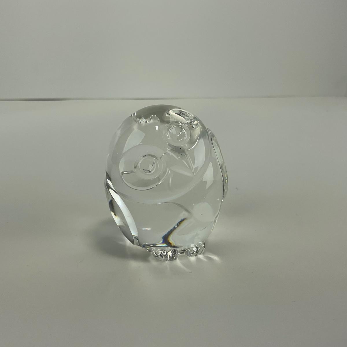 One vintage Steuben crystal owl figure signed. This piece does have some scuffs, scratches, marks, or slight damage, but otherwise appears to be in great shape. Please see photos for details and condition. Any condition statement is given as a courtesy to a client, is an opinion, and should not be treated as a statement of fact. Reference to condition written, oral or within a condition report shall not be regarded as a full account of condition and may not include all defects, alterations, or restorations. Absence of a condition report does not imply a lot is flawless or lacking imperfections or damage. Katherine’s Auction & Appraisal Service shall have no responsibility for any error or omission. Returns shall not be accepted on the basis of condition. ::: Shipping is available on this lot. If you require shipping you must let us know at the close of the auction. We will coordinate with you after the item has been won. Shipping fees will include insurance up to or exceeding the value of all items being mailed. If you have any questions regarding this lot please contact the auctioneer either via this website, by direct email or by phone. PICK UP TIMES and other important information can be found in the TERMS and DESCRIPTION of the auction. Please take a look for pertinent information. Thanks!