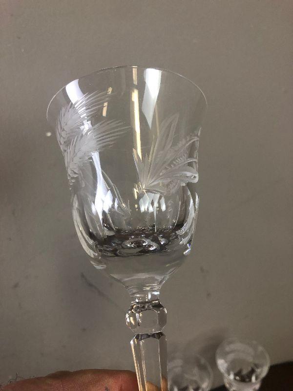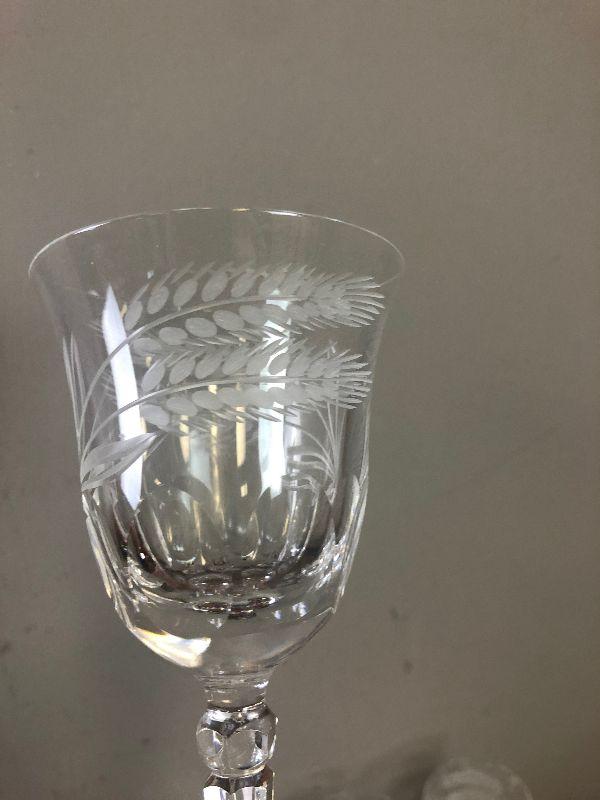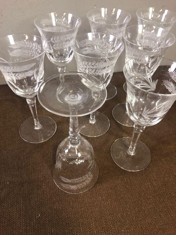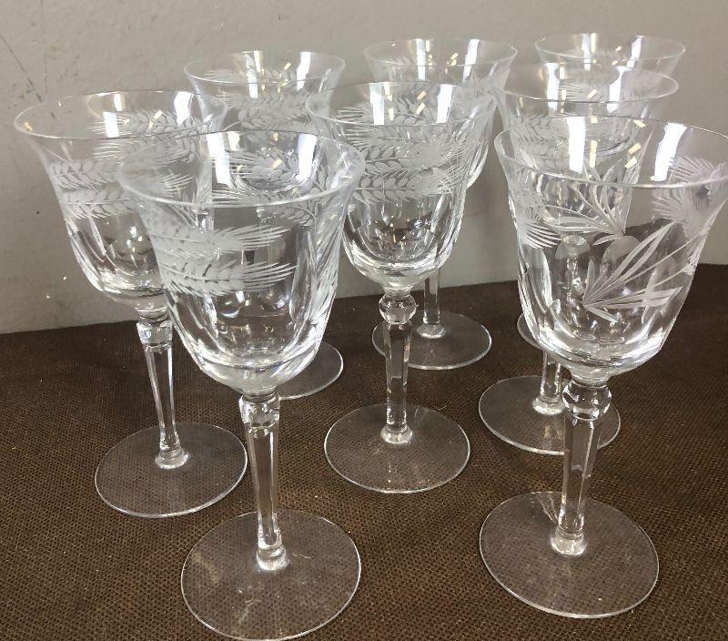 #163 Vintage Cut Etched Wheat 8 Wine Goblets