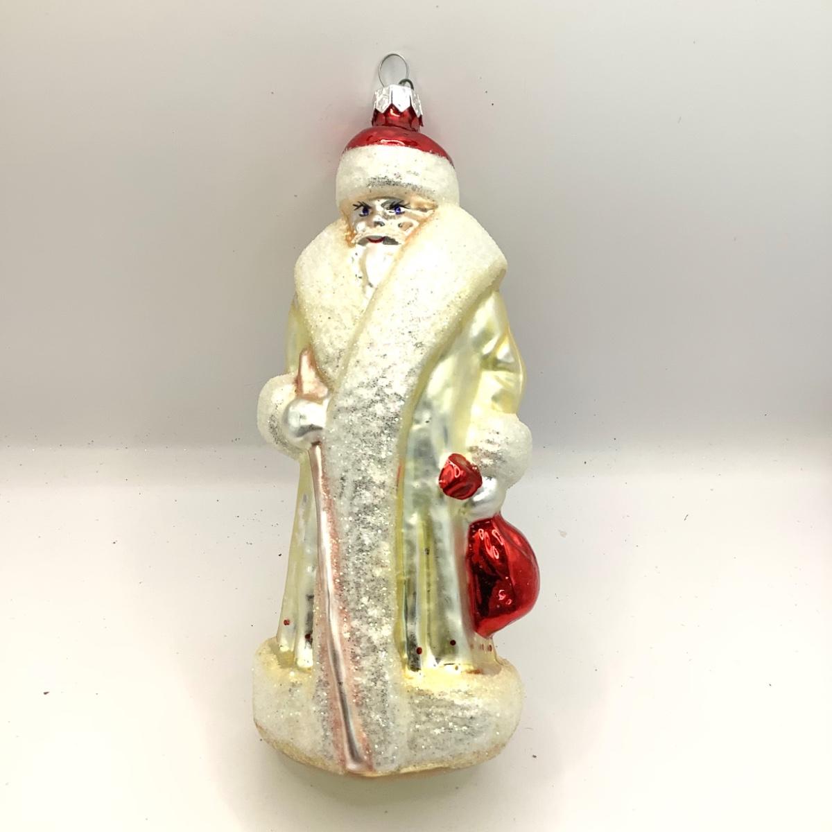1634 Christopher Radko 1991 Russian White Coat Santa Glass Ornament