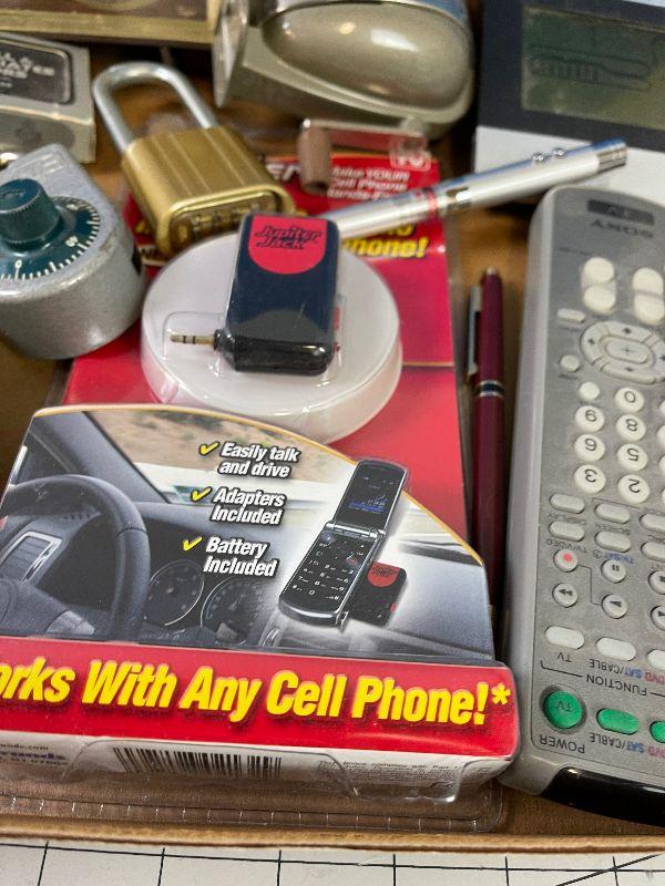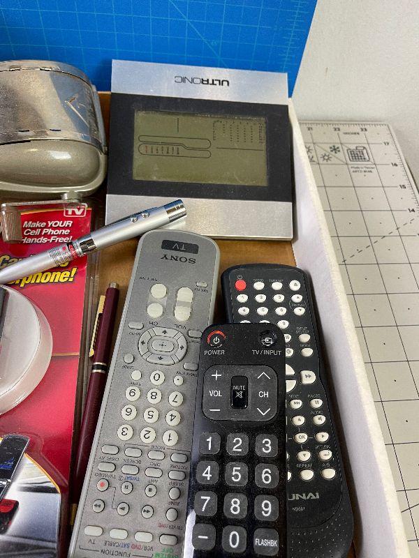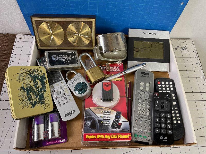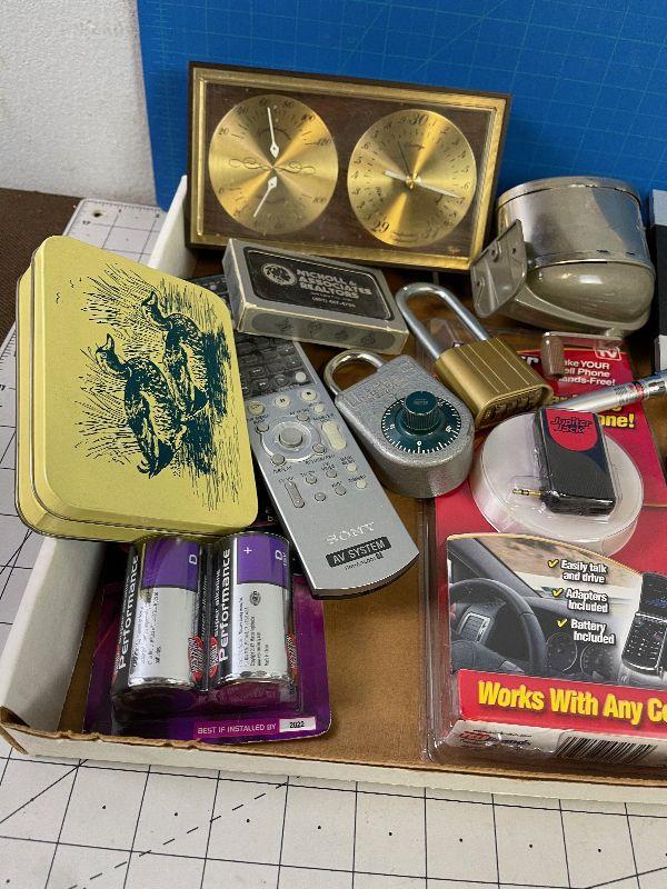 Batteries, Tin Box, Remotes and Pencils