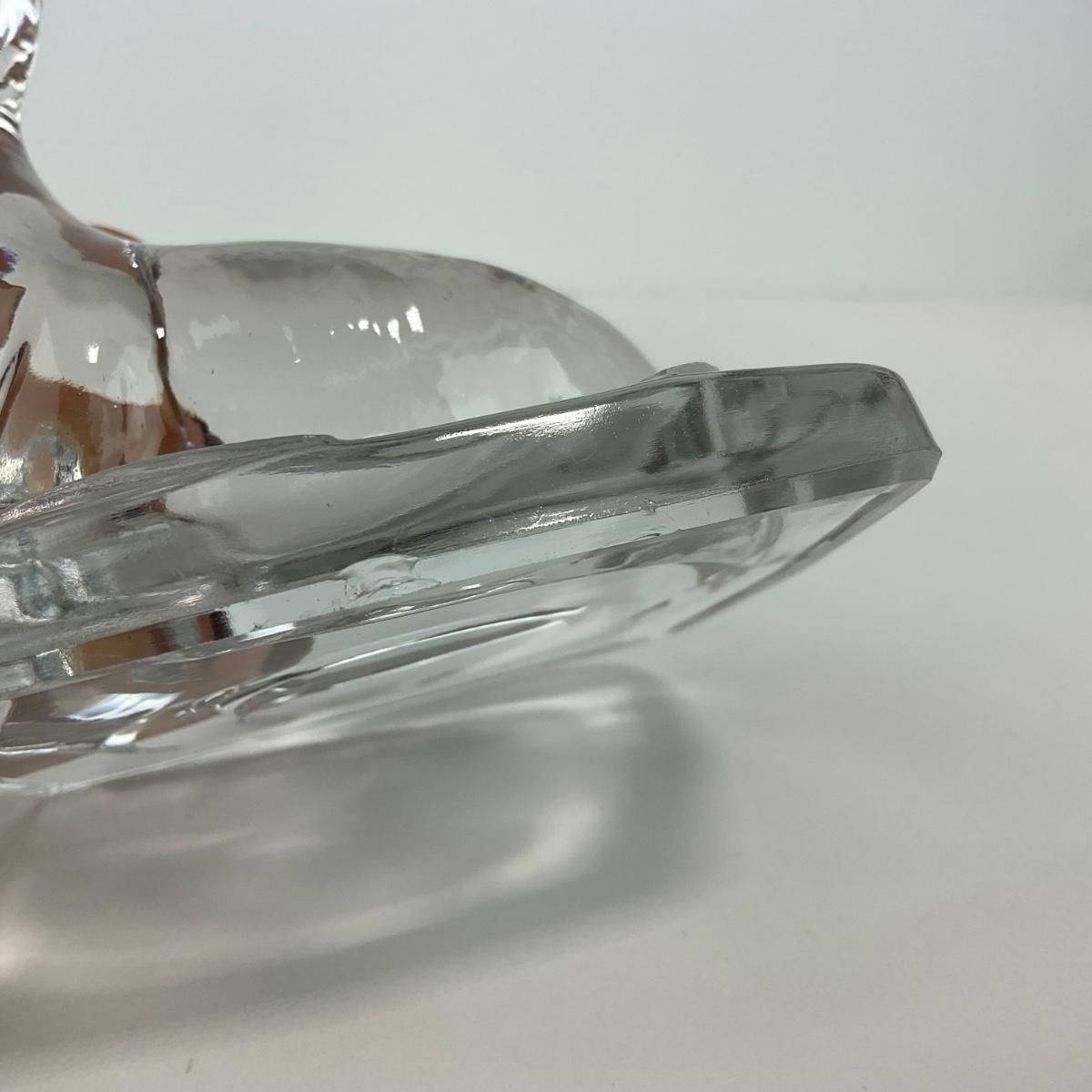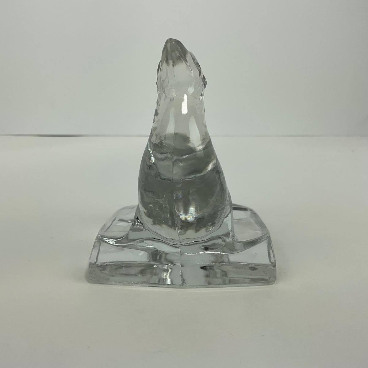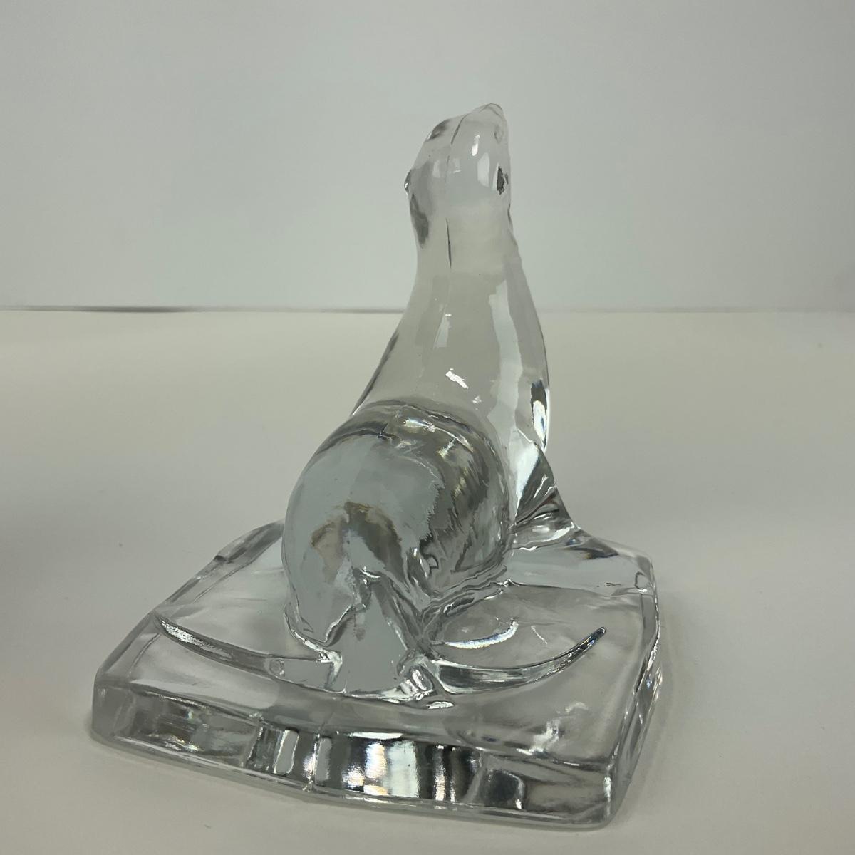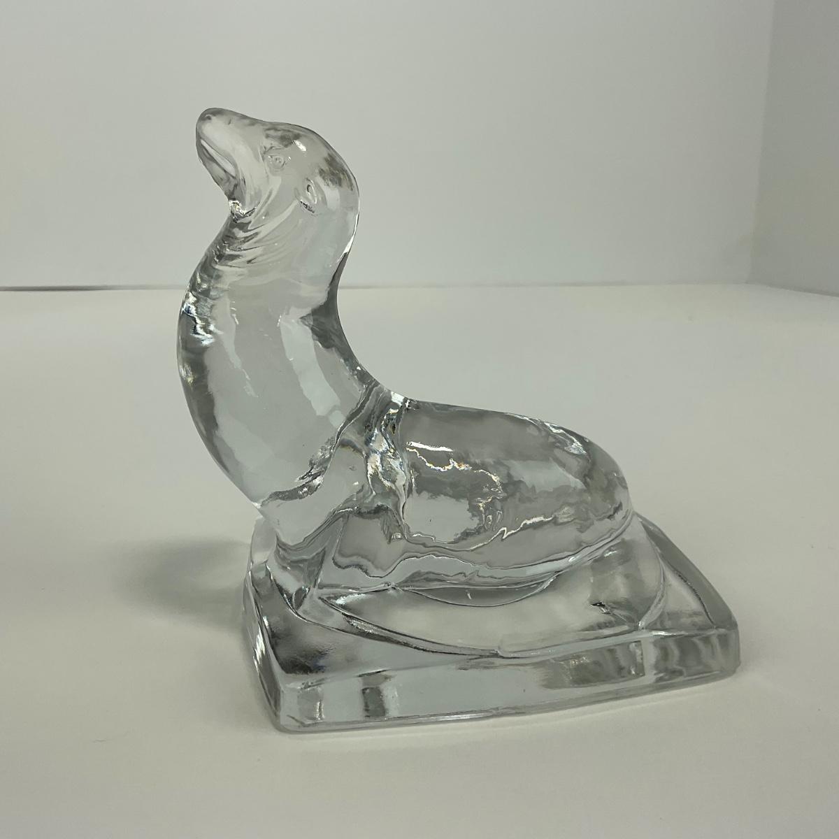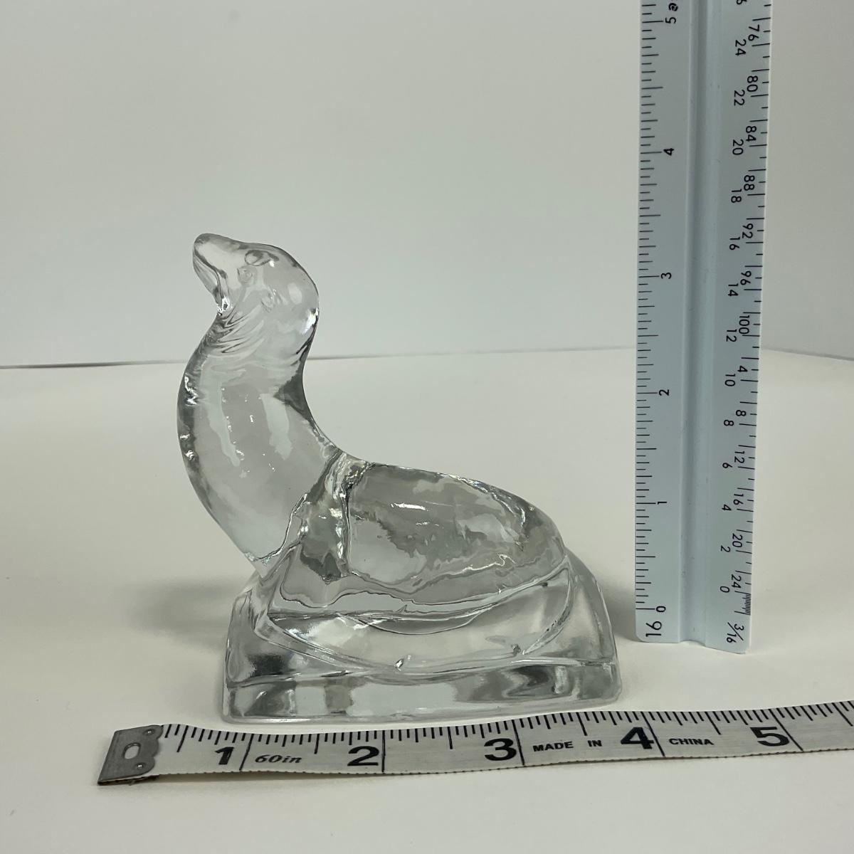 One Fostoria clear glass seal figure with a few small chips on the bottom base. This piece does have some scuffs, scratches, marks, or slight damage, but otherwise appears to be in great shape. Please see photos for details and condition. Any condition statement is given as a courtesy to a client, is an opinion, and should not be treated as a statement of fact. Reference to condition written, oral or within a condition report shall not be regarded as a full account of condition and may not include all defects, alterations, or restorations. Absence of a condition report does not imply a lot is flawless or lacking imperfections or damage. Katherine’s Auction & Appraisal Service shall have no responsibility for any error or omission. Returns shall not be accepted on the basis of condition. ::: Shipping is available on this lot. If you require shipping you must let us know at the close of the auction. We will coordinate with you after the item has been won. Shipping fees will include insurance up to or exceeding the value of all items being mailed. If you have any questions regarding this lot please contact the auctioneer either via this website, by direct email or by phone. PICK UP TIMES and other important information can be found in the TERMS and DESCRIPTION of the auction. Please take a look for pertinent information. Thanks!