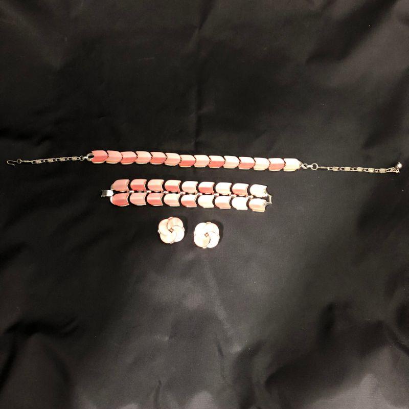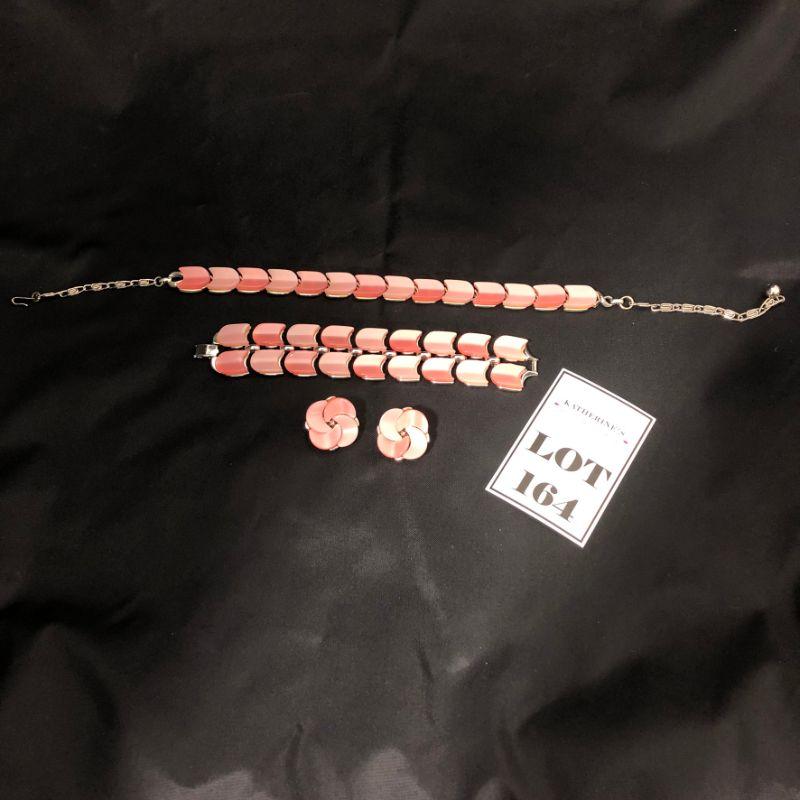 Another classic collectible set from Lisner, Circa 50s/60s. This Pink Acrylic set includes a matching Necklac, Bracelet and Earrings.