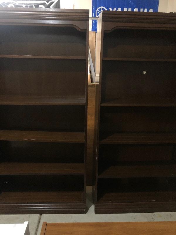 72 x 26 x 12 good used condition adjustable shelves. Matching, one has a whole in the back for cords. This is an ONSITE Auction all items will need to be picked up on location. Please see auction description for pick up procedures
