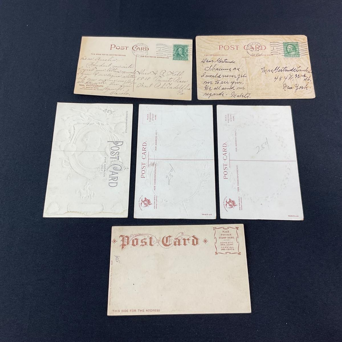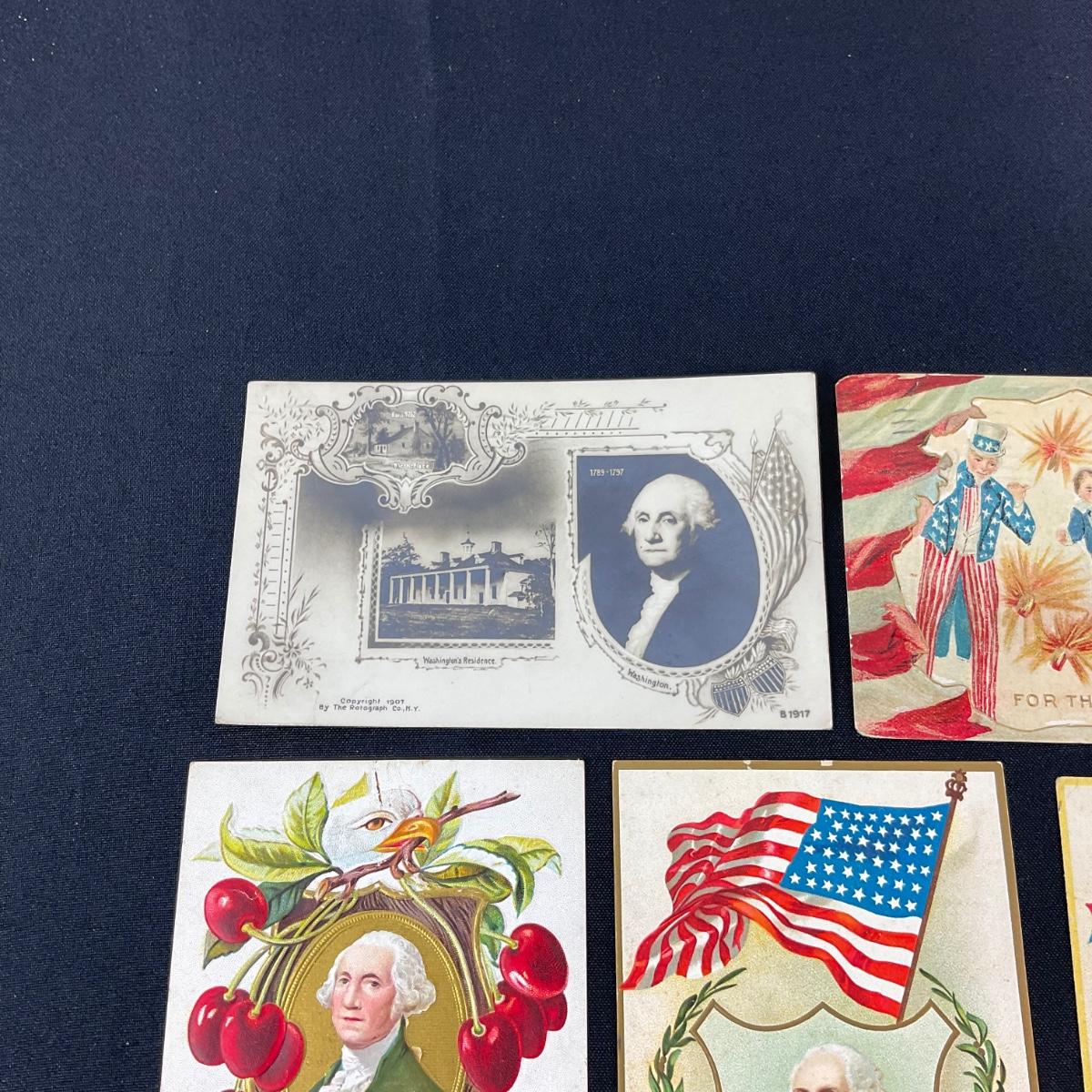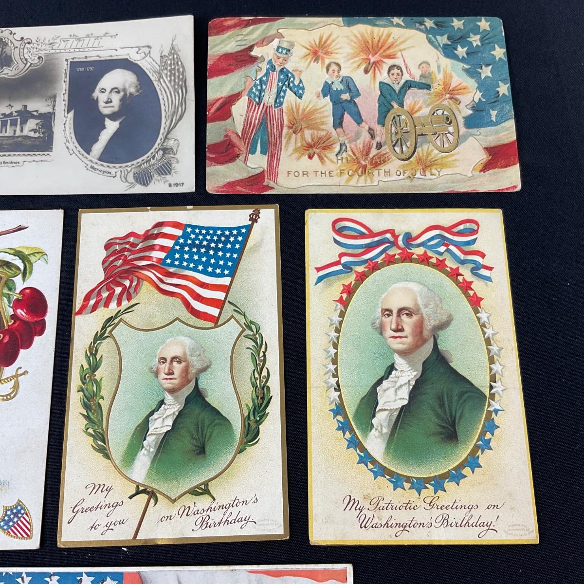 Six patriotic assortment of postcards. Please see photos for details and condition. Any condition statement is given as a courtesy to a client, is an opinion, and should not be treated as a statement of fact. Reference to condition written, oral or within a condition report shall not be regarded as a full account of condition and may not include all defects, alterations, or restorations. Absence of a condition report does not imply a lot is flawless or lacking imperfections or damage. Katherine’s Auction & Appraisal Service shall have no responsibility for any error or omission. Returns shall not be accepted on the basis of condition. ::: Shipping is available on this lot. If you require shipping you must let us know at the close of the auction. We will coordinate with you after the item has been won. Shipping fees will include insurance up to or exceeding the value of all items being mailed. If you have any questions regarding this lot please contact the auctioneer either via this website, by direct email or by phone. PICK UP TIMES and other important information can be found in the TERMS and DESCRIPTION of the auction. Please take a look for pertinent information. Thanks!